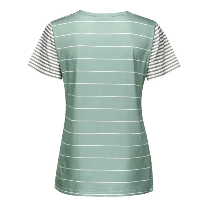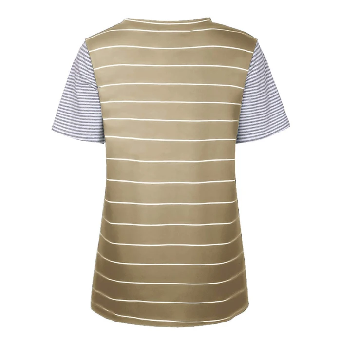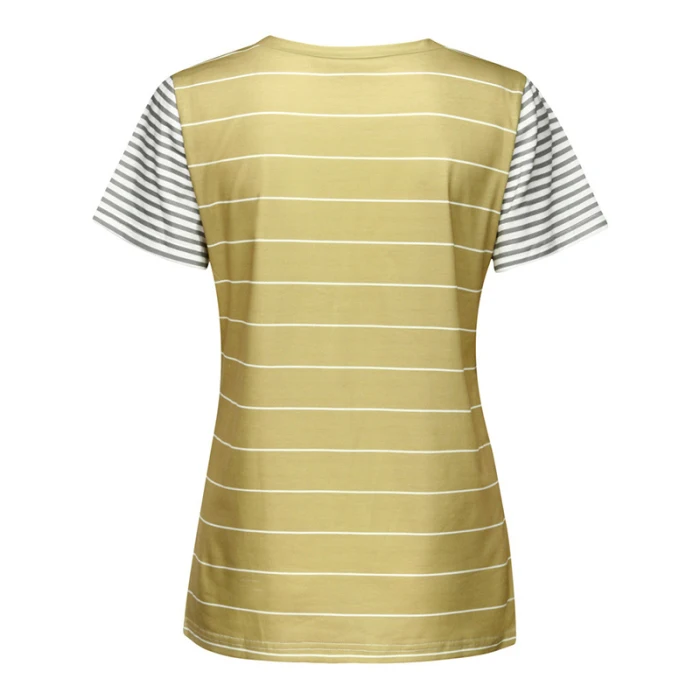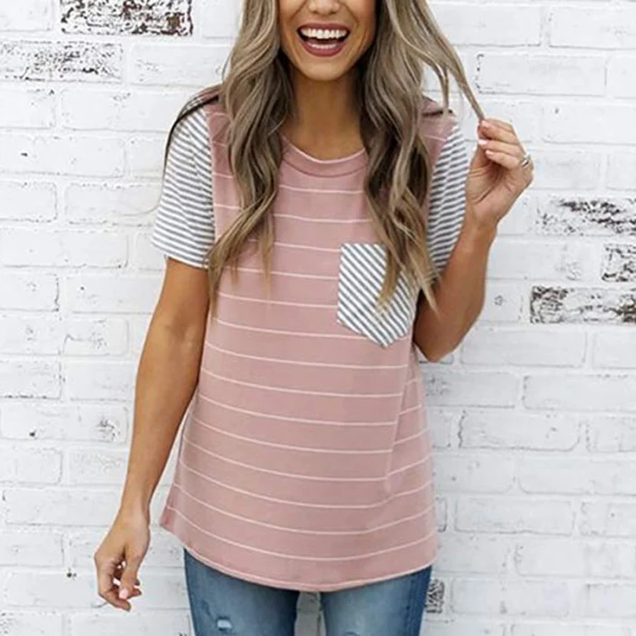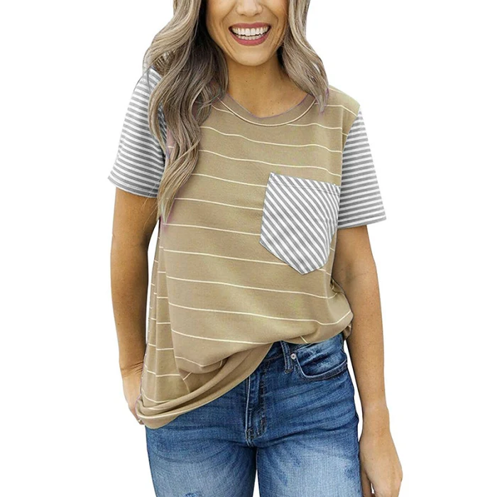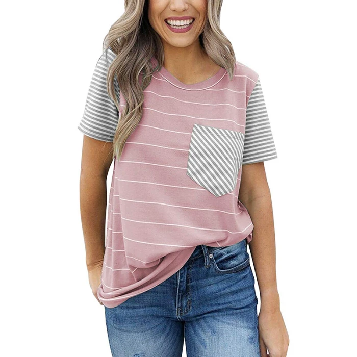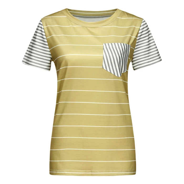 Женская Полосатая Повседневная футболка контрастного цвета с коротким рукавом и карманом для лета GDD99