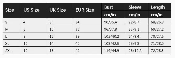 Размер: США, Великобритания, Европейский обхват груди, длина рукава