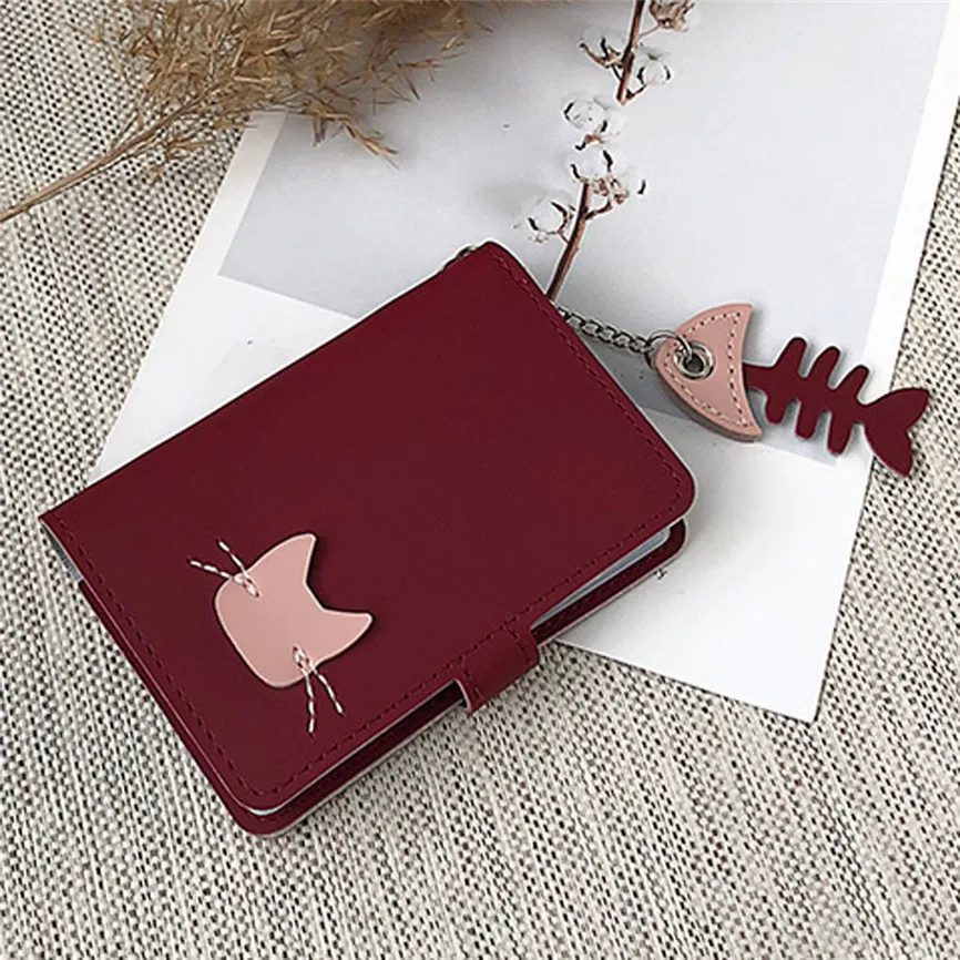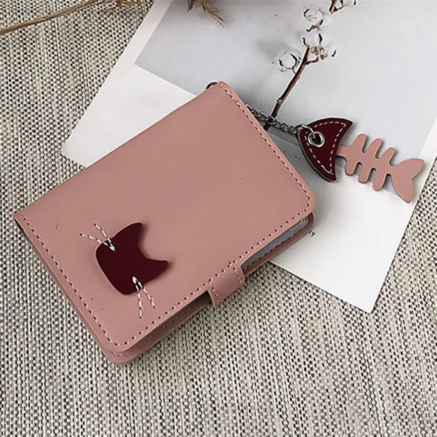 Короткий кошелек, женская сумка для карт с милым животным узором, кошелек для монет, клатч, бумажники без молнии, кошелек из искусственной кожи, винтажный кошелек Portefeuille Femme