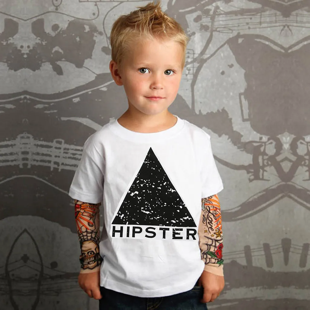 Футболка для маленьких мальчиков с сетчатым принтом тату, топы с рукавами