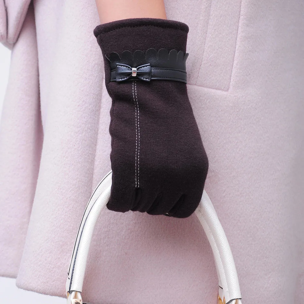 Модные женские зимние теплые перчатки с бантом