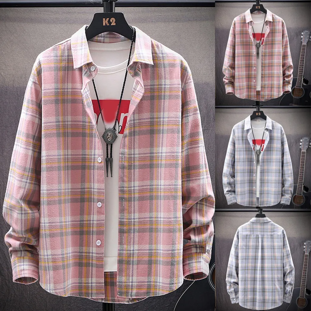 Мужская новая стильная рубашка с длинными рукавами в клетку для отдыха модная блузка рубашка
