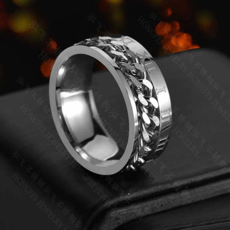 8 мм новые кольца из нержавеющей стали с римскими цифрами золотые черные крутые кольца в стиле панк мужские кольца с вращающейся цепочкой модные ювелирные изделия мужские кольца