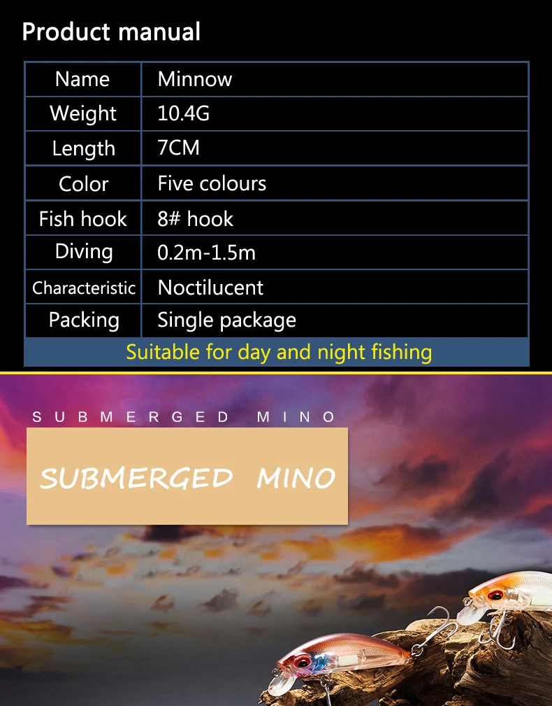 Фосфоресцирующий Minnow погружающийся рывок рыболовная приманка твердый воблер 7 см 10,4 г люминесцентные воблеры возбудитель Троллинг рыболовные снасти