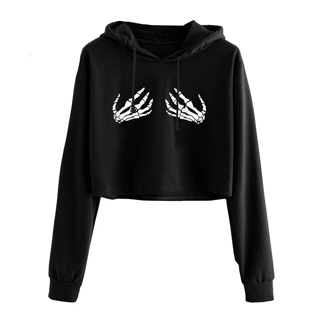 Vrouwen Lange Mouwen Хэллоуин Ghost Klauw свитер кроп-топ с капюшоном