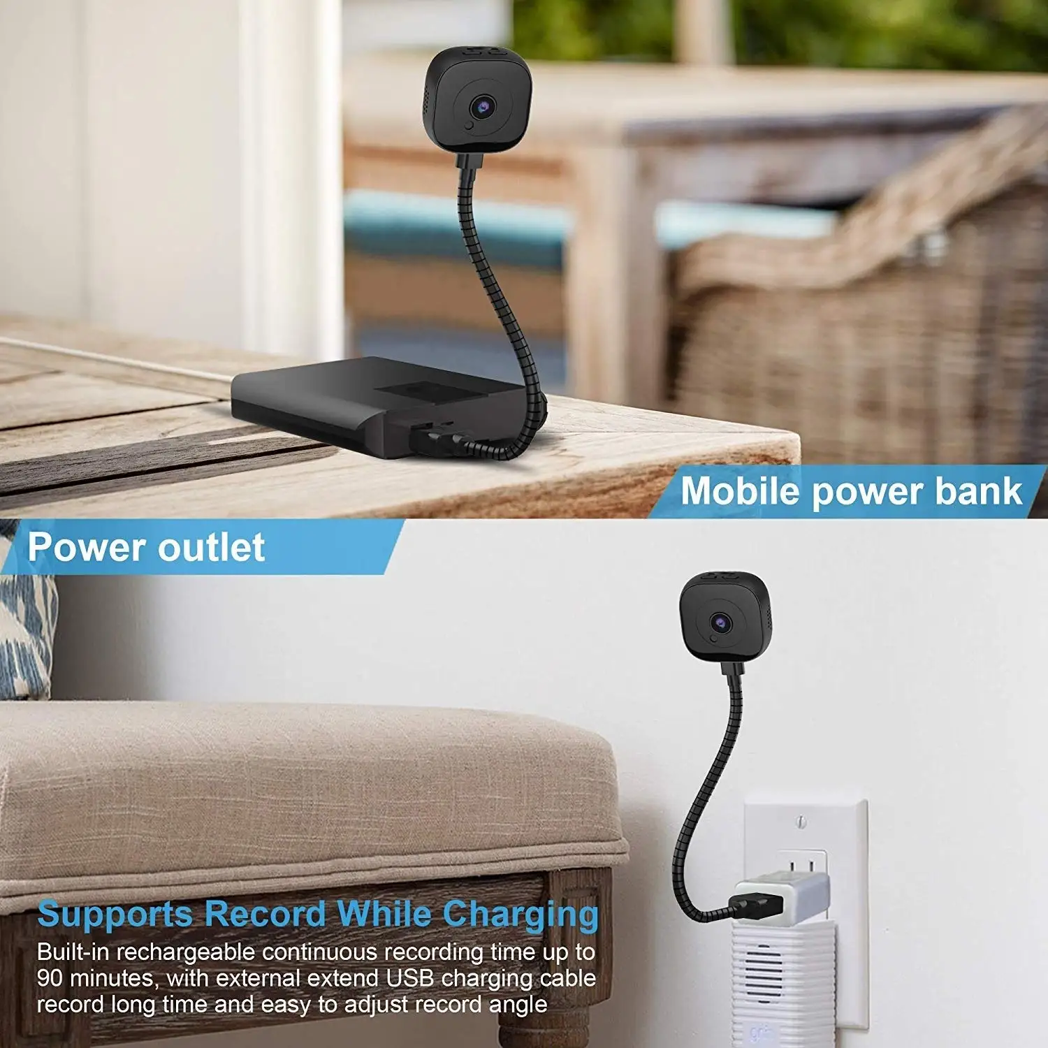 ★Беспроводной WI-FI подключения (только 2,4 ГГц) поддержка телефона, вы можете в прямом эфире с помощью скачать приложение (IOS и Android доступно) для удаленного просмотра в тех случаях, когда вы оставили дома. ★Самая маленькая в мире камера (1,5 * 0.59in, 0,53 унций) с 320 мАч встроенный аккумулятор поддержка продолжительность записи до 90 минут. Вы можете через usb-кабель для зарядки или задний магнит поместить камеру в угол дома, офиса, склада, магазина, двора, сада для работы во время зарядки. Или в любом месте есть сильный магнит. ★Full HD 1920x1080P 30 кадров в секунду качество видео и ультра тонкий размер, высокое разрешение прямая трансляция обеспечивает четкое изображение с более подробной информацией, чтобы узнать, что происходит, когда вы находитесь далеко. Он также поддерживает циклическую запись и воспроизведение с локальной sd-картой (до 64G, не входит в комплект). ★Мини-камера с 6 скрытыми инфракрасными светодиодами без освещения, и вы можете настроить включение/выключение инфракрасных светодиодов через ваш телефон. Записывает четко как в дневное время, так и в полной темноте с ночным визуальным диапазоном до 15-20 футов. ★100% гарантия: Ваше удовлетворение является нашим главным приоритетом. Если у вас есть какие-либо проблемы во время сделки или использования, пожалуйста, дайте нам знать, и мы будем работать с вами, чтобы решить проблему. Обнаружение движения Вы получите уведомление о движении через приложение при обнаружении неожиданного движения. Мини-камера захватывает изображение и сохраняет его в приложении. Улучшенная функция обнаружения движения может установить чувствительность, тем самым предотвращая Ложные сигналы тревоги, такие как растения, движущиеся на ветру, и получать оповещения только для области, которую вы заботитесь о наиболее, как детская комната, дом для собак и т. Д. Не хотите, чтобы вас беспокоили предупреждения о движении, когда вы дома? Прост в использовании Эта камера с жестким зарядным кабелем, при зарядке во время записи, вы можете изменить угол записи произвольно. Благодаря волшебной базе камера вращается на 360 градусов вручную. Ночное видение Мини-камера с 6 скрытыми инфракрасными светодиодами без освещения, дальность ночного видения 5 м, Удаленное включение или выключение, Больше не беспокойтесь о записи ночью, эта домашняя камера дает вам фантастический ночной опыт даже в темноте и полной защите, чтобы увидеть всю комнату ночью-не просто ограниченный обзор прожектора в любое время дня или ночи.