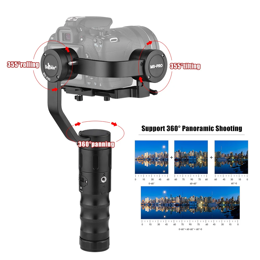 MS-PRO 3-осевой портативный монопод с шарнирным замком Камера Гироскопический стабилизатор встроенный 32-битный энкодер Системы Поддержка 360 ° панорамная съемка для Canon 5D 6D 7D для сыновнюю A6300 A7 RX100 для GH4 LX100 DSLR ILDC Камера s нагрузки емкость 200 г-900 г