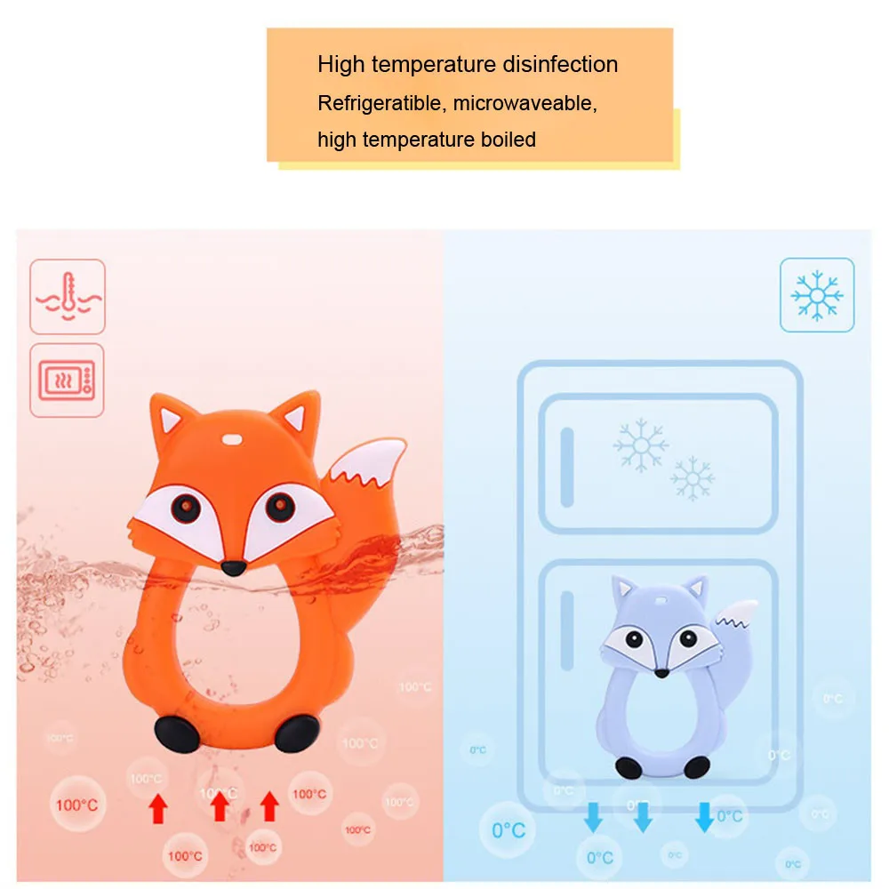 1. Может помочь вашему ребенку хорошо измельчить, облегчить боль и чувствовать себя некомфортно.2. Практическая функция жевания, массаж десен.3. Здоровье, тренировка.ПараметрыФорма: с рисунком лисыМатериал: пищевой силиконХарактеристики материала: без нитрозамина, без ПВХ, без латекса,Без фталата, без BPAВозраст: 4-24 месяцаРазмеры: 85x62x9mmПосылка содержание