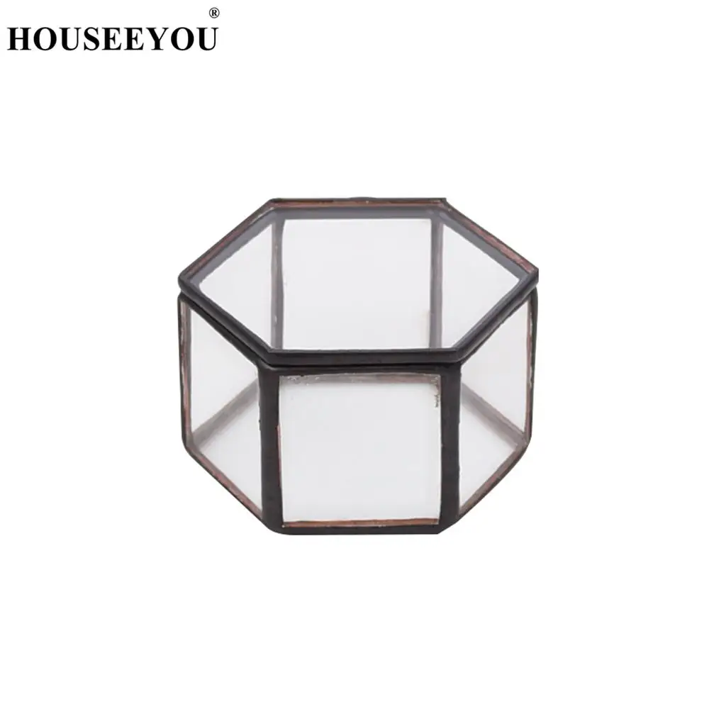 -Classic style glass hexagonal terrarium box