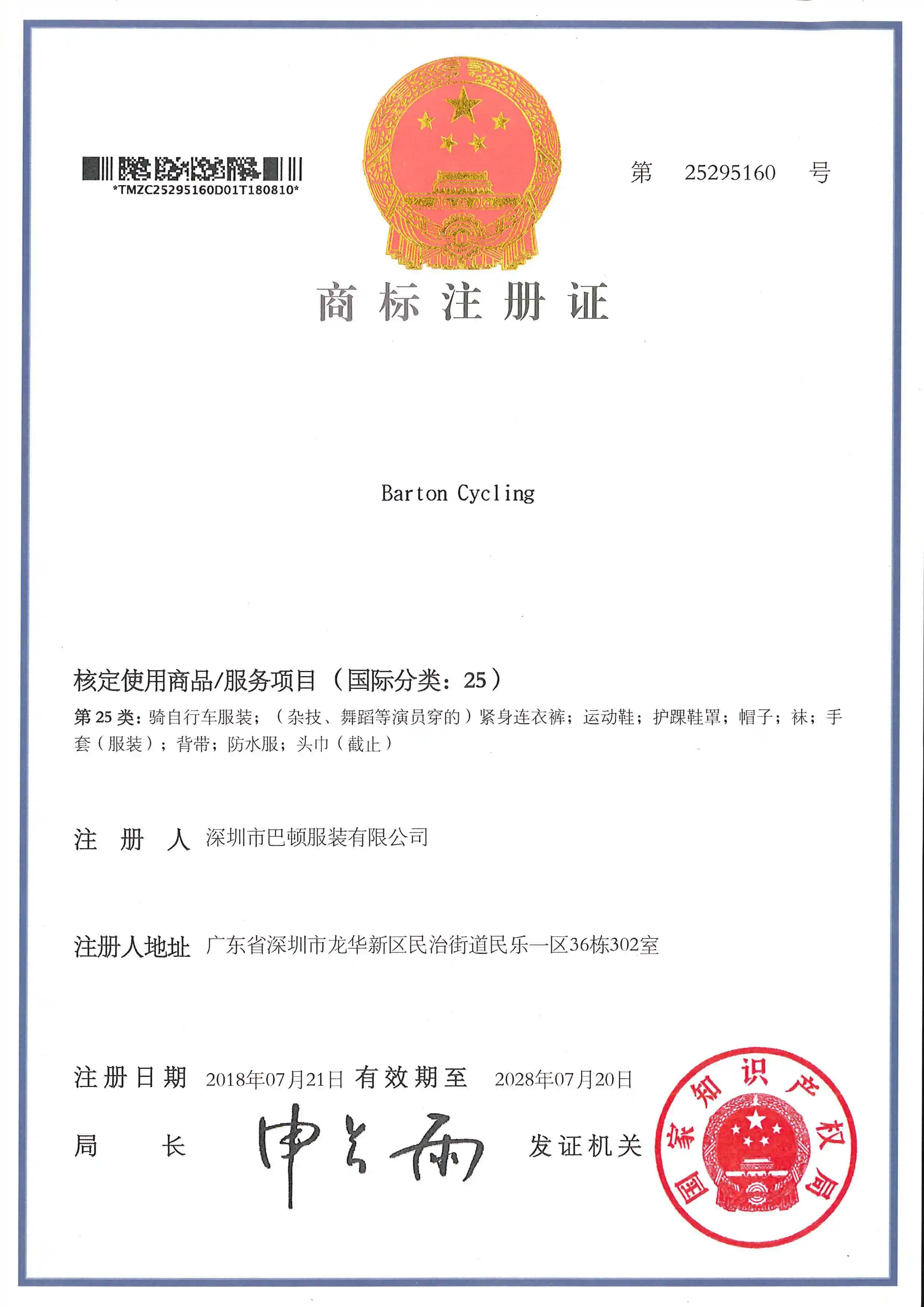 Barton велосипедная бирка и сертификат регистрации торговой марки