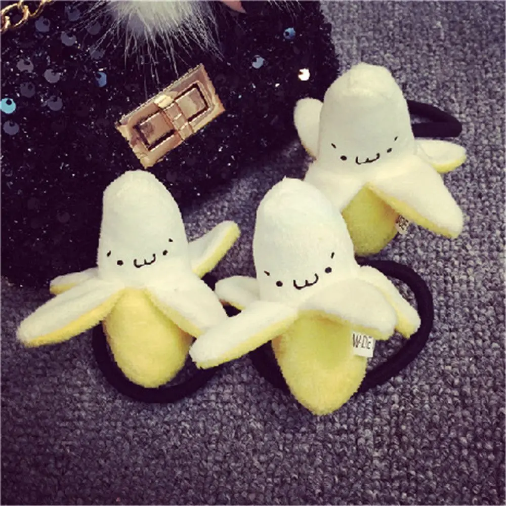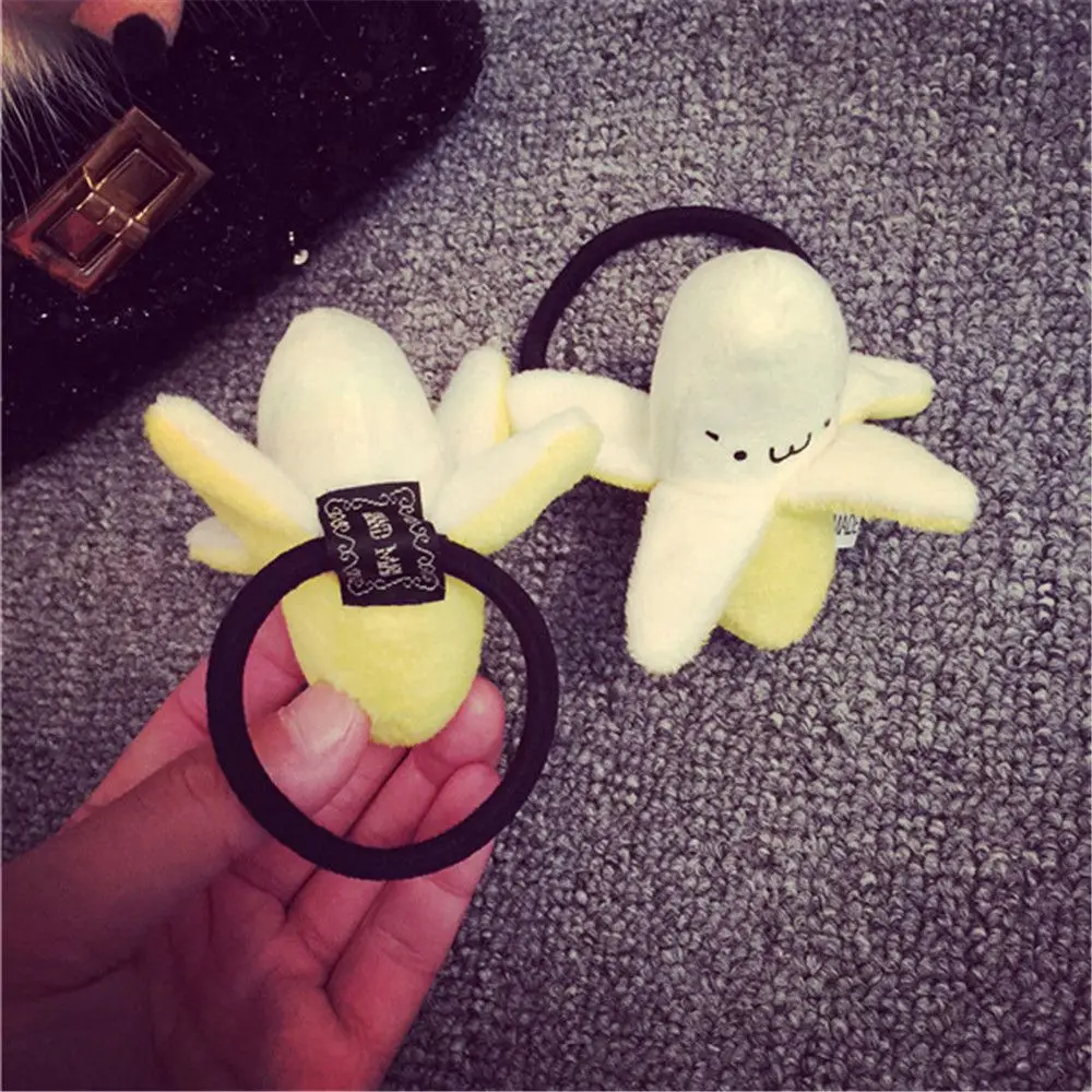 100% новый и высокое качество Цвет: желтый Материал: веревка Посылка: 1 X милый кулон в форме банана, эластичные кольца для волос Стиль: в форме банана