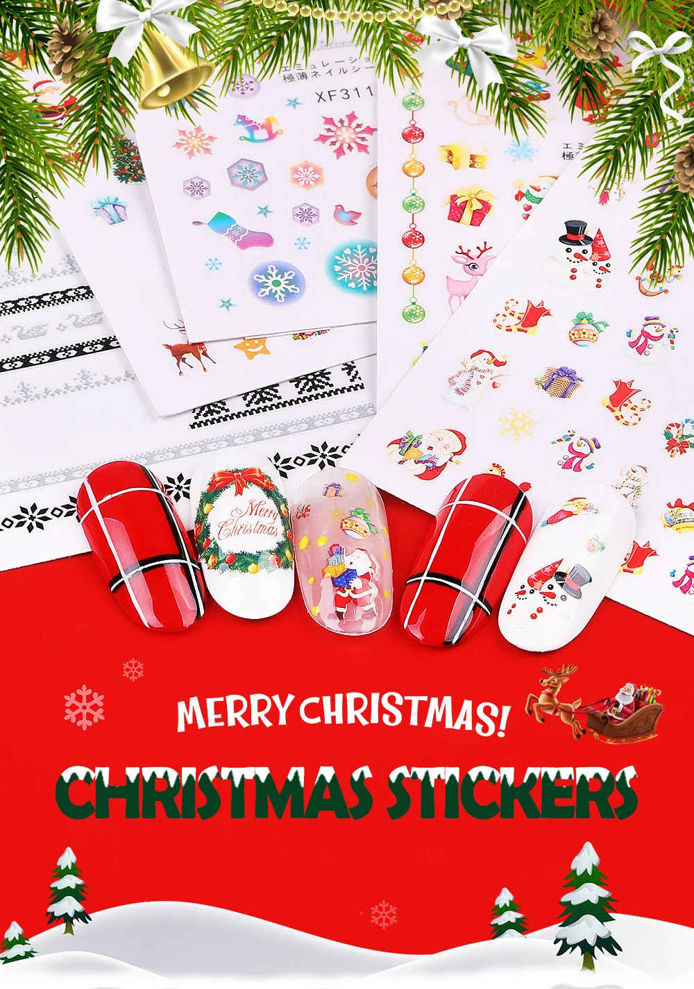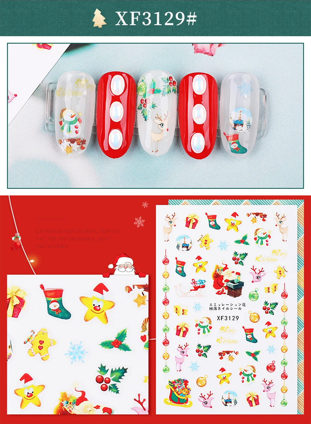 Новый дизайн ногтей стикер 3d слайдер татуировки рождественский стиль водная наклейка Санта-Клаус Снежинка Полный Обертывания Дизайн Маникюрные наклейки