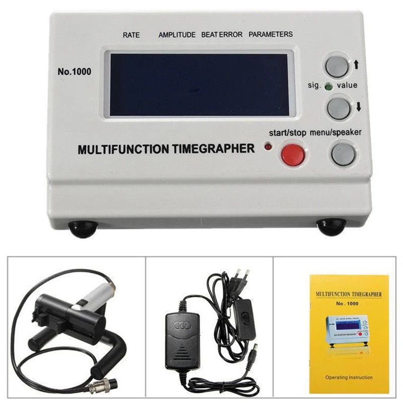 No.1000 механический часовой хронограф, многофункциональная часовая Проверка времени. Точный инструмент для испытания механических часов, он используется для многократного тестирования производителями часов и техниками часов. Диаграмма частоты часов может быть Отображается на ЖК-экране. В соответствии с различными часами прибор автоматически регулирует оптимальный уровень сигнала во время тестирования. Прибор автоматически рассчитает частоту, амплитуду, погрешность в режиме реального времени и отобразит их по данным Время.