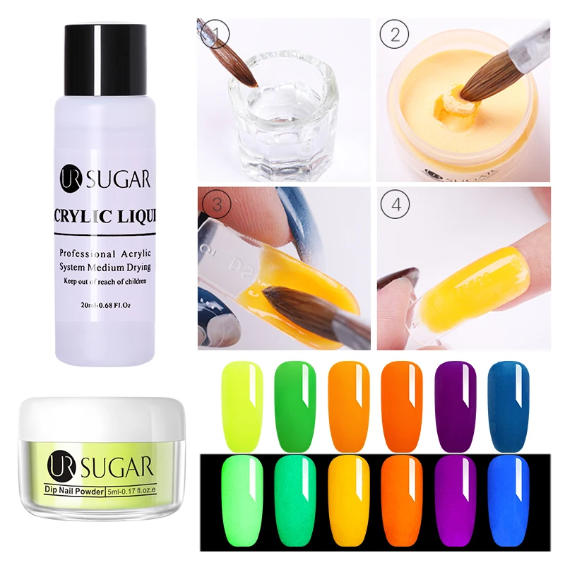 Содержимое упаковки: 1 Набор UR SUGAR флуоресцентный 3 в 1 Dip порошок для ногтей