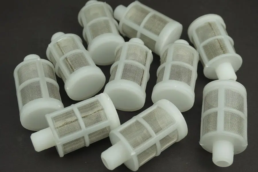 100% новый и качественный. Это сетка фильтра Прочный и экологически чистый материал, легко чистится Наливание вина, розлив и т. д., очень прост в использовании. Чтобы предотвратить засорение силиконовой трубки, фильтруйте помесь, попадающую в силиконовую трубку Особенности: Материал: полипропиленовый Пластиковый корпус + сетка из нержавеющей стали Размер: Длина изделия 50 мм, Длина части фильтра 40 мм, Интерфейсная часть длинной 10 мм, Диаметр интерфейса 12 мм, Диаметр интерфейса 8 мм, Диаметр фильтра 28 мм Посылка: 10 x сетчатый фильтр * Примечания: без коробки или розничной упаковки (товар будет надежно завернут в пузырчатый конверт).