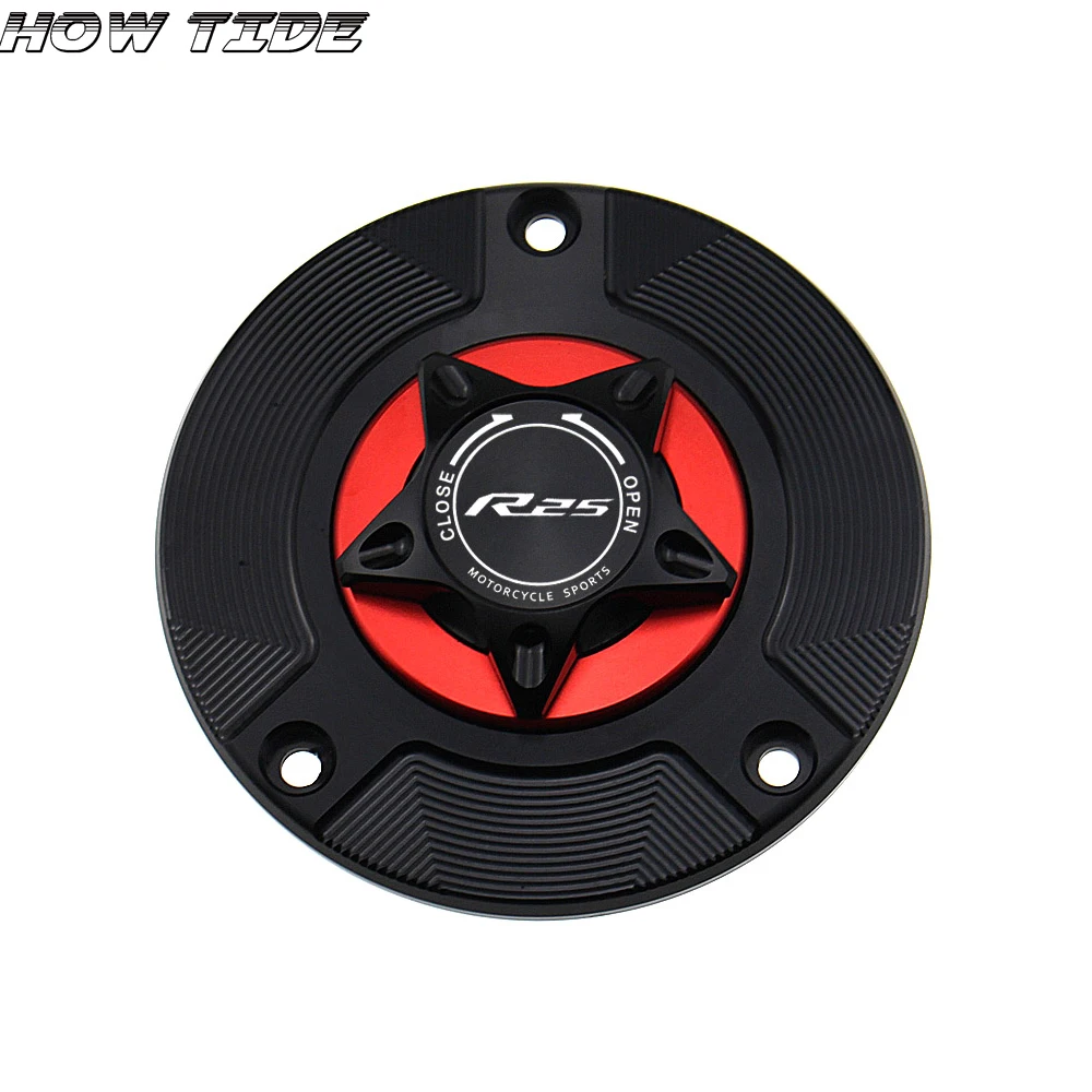 Motorcycle Gas Fuel Tank Cap Cover -Condition: Aftermarket Brand New, High Quality -Material: CNC T6 6061 Billet Aluminum, Anodizing Surface -Color: Black/Blue/Red/Gold/Silver/Green/Orange/Titanium -The latest design of the fuel tank cap, unique style like a disc brakes attached to the surface of the fuel tank. -Oem fit and easy replacement. -No modification is needed -No installation instructions -Quantity: 1 piece Fit for: R25 2014-2018 ( Please Ensure This Part Fits For Your Motorcycle Before order )