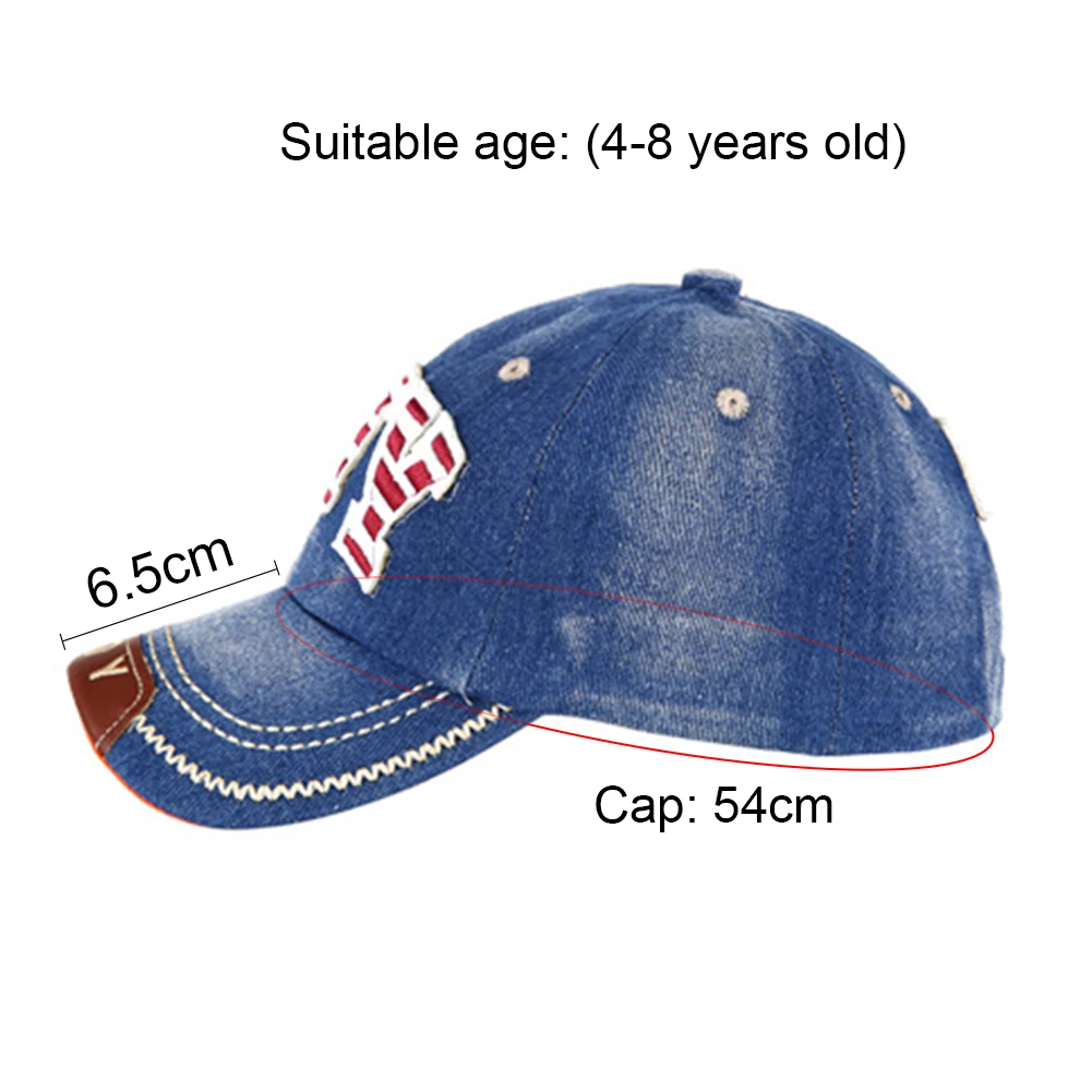 Детская джинсовая бейсбольная кепка для мальчиков, бейсболка, летняя уличная джинсовая Повседневная Солнцезащитная шляпа, шляпа в стиле хип-хоп с надписью для маленьких мальчиков и девочек, От 4 до 8 лет