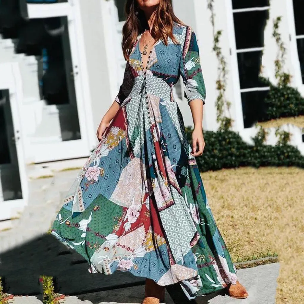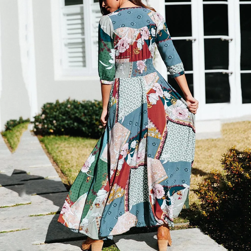 Длинное платье с короткими рукавами и принтом на пуговицах; платье принцессы