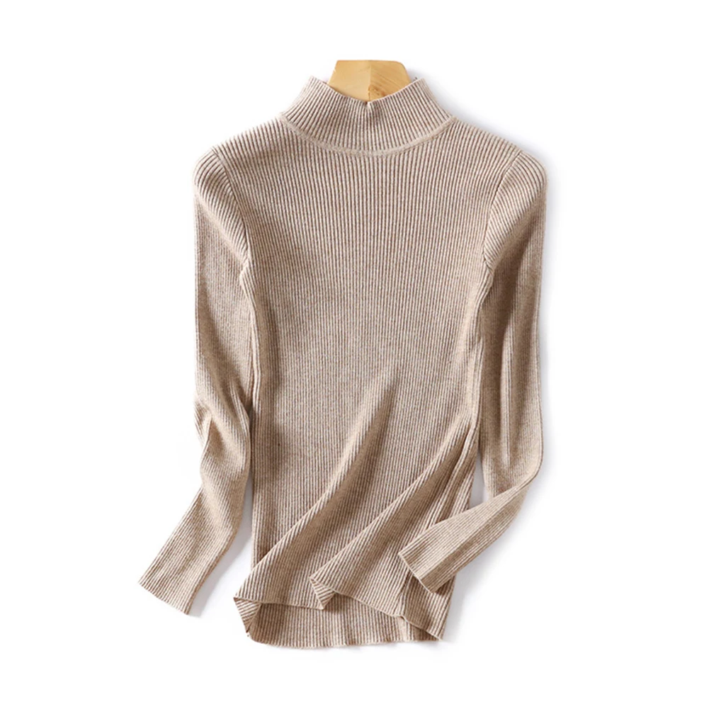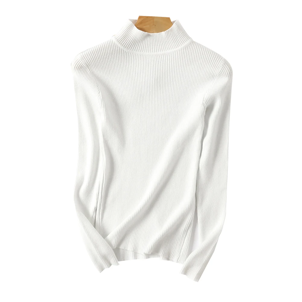 Осенний женский джемпер, Однотонный свитер с длинным рукавом, облегающий трикотаж