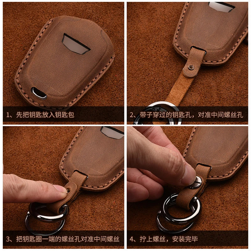 Описание: Состояние на 100% абсолютно новый и высокое качество Цвет: коричневый, красный, черный на ваш выбор Материал: высококачественный металлический брелок + натуральная кожа Количество: 1 чехол для ключей Приспособление: Подходит для Cadillac CT6 XT5 ATS CTS 4 кнопки В комплект входит: 1x чехол для автомобильного ключа для Cadillac