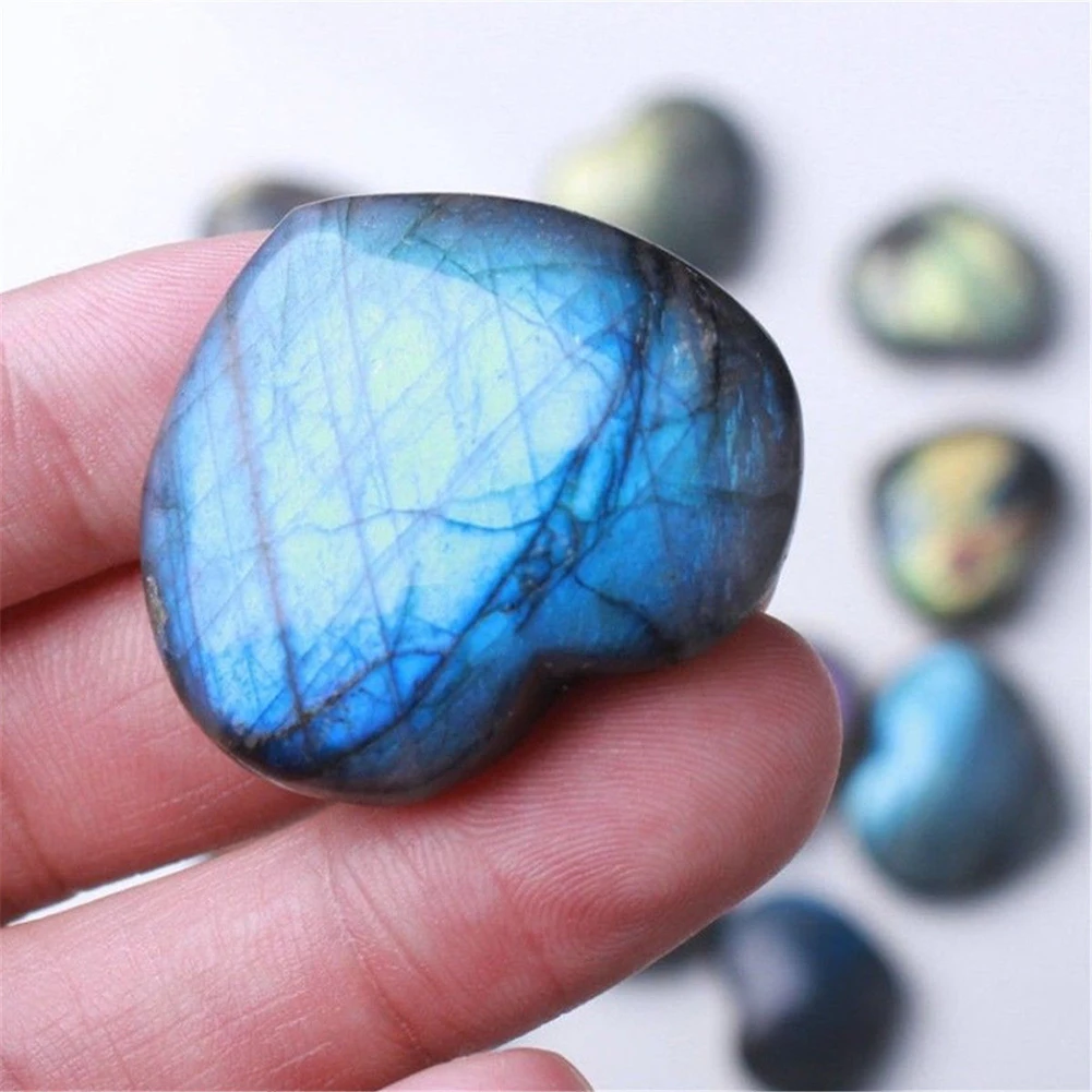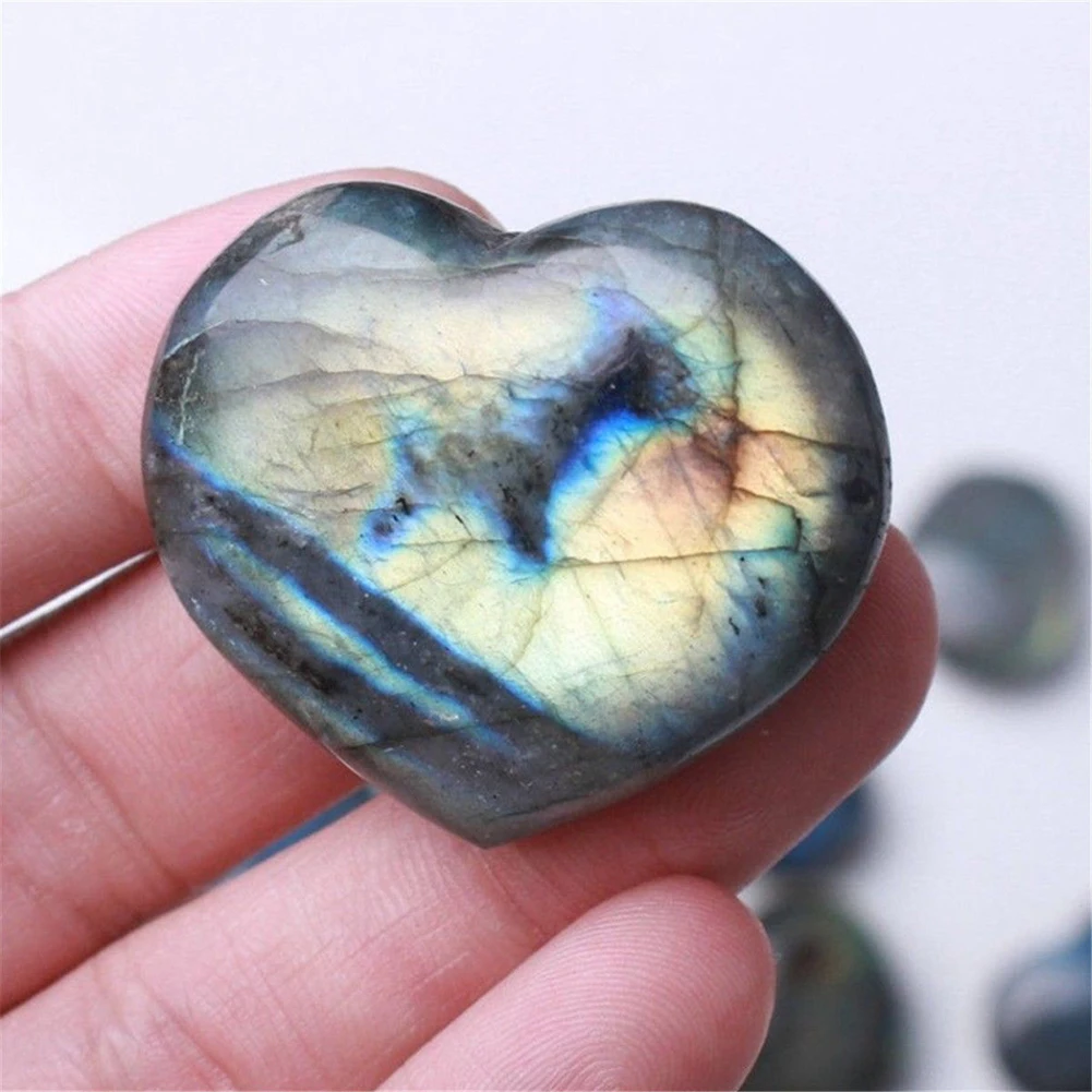 Искусственный лабрадоритовый камень в форме сердца, отлично подходит для коллекции.