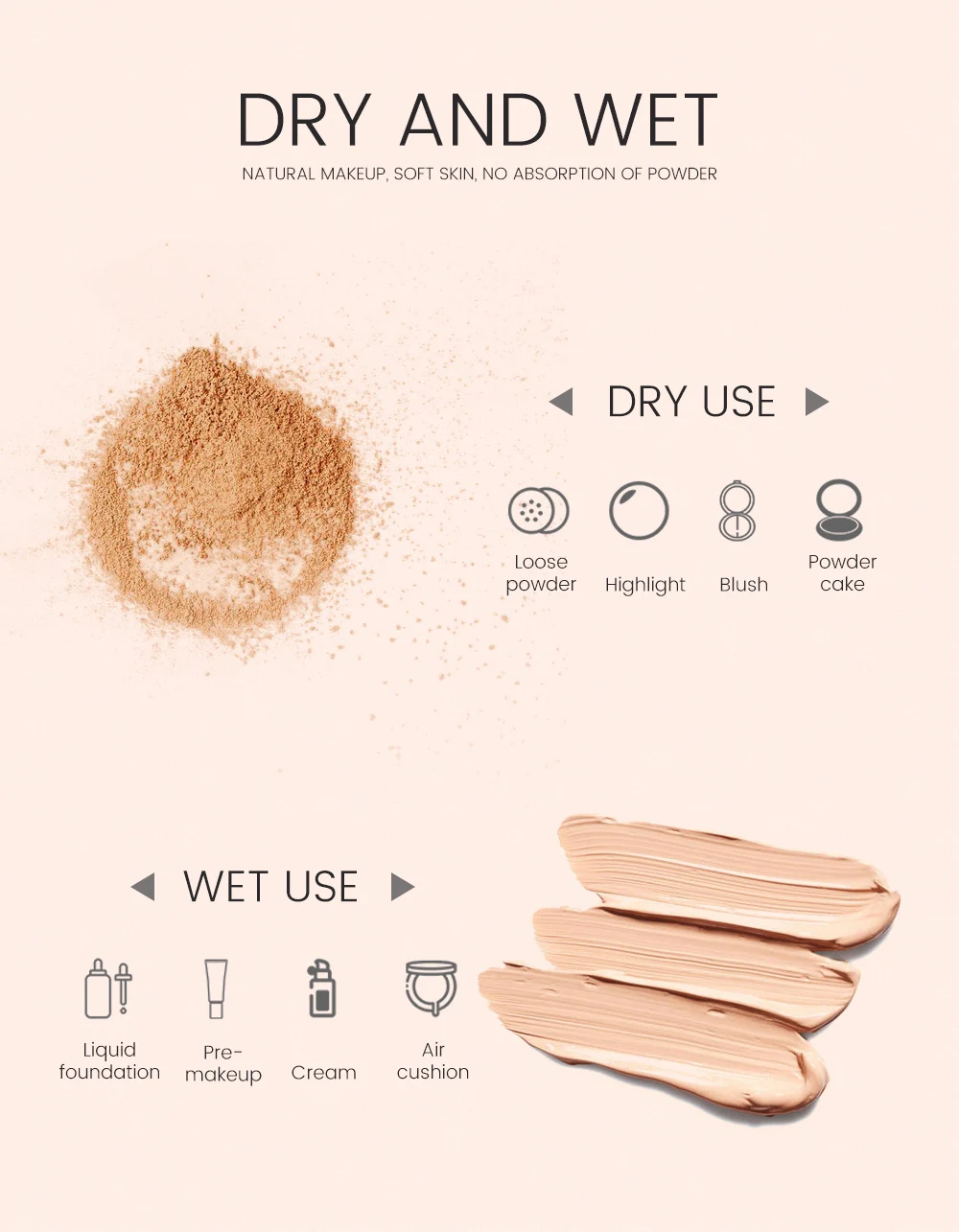Идеально подходит для пудры, крема BB, румян, солнцезащитных блоков и т. д.