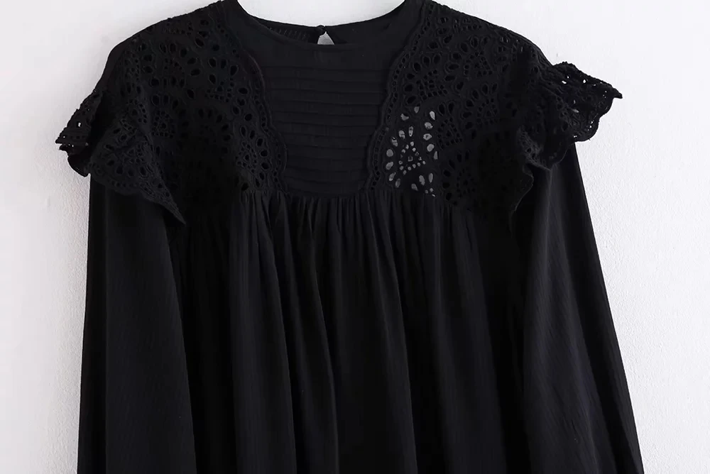 Женские черные блузки с длинными рукавами, рубашка с цветочным кружевом и вырезами, шикарные женские топы и блузки, Осенние Топы, рубашка zora bluasa 2019
