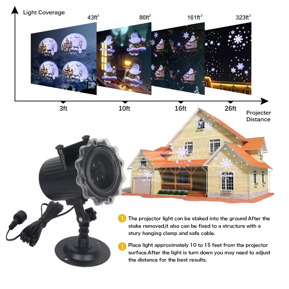 Рождественский лазерный проектор Санта-Клауса для помещений и улицы, 12 моделей, анимационный эффект, Снежинка, снеговик, проектор Технические характеристики Товар: Рождественская анимация/Хэллоуин проектор светильник Количество светодиодов: 4 белых бисера Режим работы: автоматический с вентилятором Материал корпуса: АБС-пластик Цвет: черный Расстояние проекции: 3-20 м/9,84-65,62 ФТ Рабочая температура: -20 ~ 50 °C Узоры: 12 шт. Водонепроницаемый Источник питания: IP44 Водонепроницаемый светильник: IP65 Напряжение: Вход: AC110-240V В переменного тока, 50/60 Гц; Выходящее напряжение 5VDC 1A Мощность лампы: 3 Вт Мощность машины: 5 Вт Длина шнура питания: 5 метров/16,40 футов Особенности: 1. Каждый шаблон скольжения может двигаться автоматически, подходит как для внутреннего, так и для наружного применения, широко используется в дискотеках, клубах, КТВ, пабах, баре, банкете, Рождество, Хэллоуин, свадьбы, семейные вечеринки и т. Д. Идеально подходит для создания атмосферы фестиваля в течение всего года- Круглый. 2. Светодиодный светильник для проектора изготовлен из АБС-пластика, безопасный светильник класса 2. Номинальный светильник IP44 и адаптер питания IP44 позволяют выдерживать любую погоду, включая дождь, снег, пыль и интенсивный солнечный светильник 3. Встроенная функция таймера, проекционный светильник автоматически выключается после использования 6H и включается снова после 18H. 4. Это анимационный рисунок светящихся пленок, 4 милых изображения, в том числе: Санта-Клаус, Санта-Клаус и горничная, Лось и Санта-Клаус, снеговик, узор отличается от старой модели фильма, вращение старого узора, новый рисунок-это динамичное изображение, Более яркий и яркий, и рисунок более четкий. 5. Красивые движущиеся Изображения проецируются на стене и больше режимов скорости: Сам дисплей имеет несколько режимов. Вы можете сделать изображения поплавок медленно или иметь их быстро бегать. Используйте кнопку питания, чтобы переключаться между медленными, средними, быстрыми, фиксированными и выключенными. Упаковочный лист: 1 х лампа с анимационным рисунком 12 x переключаемых слайдов/узоров 1 х адаптер питания 1 х базовый штатив 1 x Руководство пользователя Примечание: 1. Подходит для использования в темных ночах и темных комнатах. 2. Пожалуйста, не используйте его в день сильного дождя.