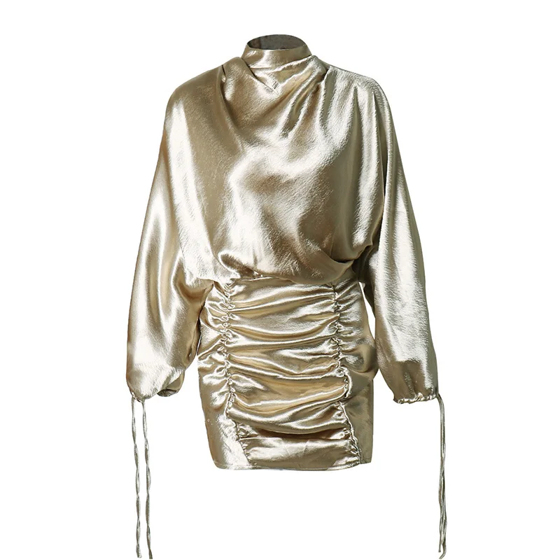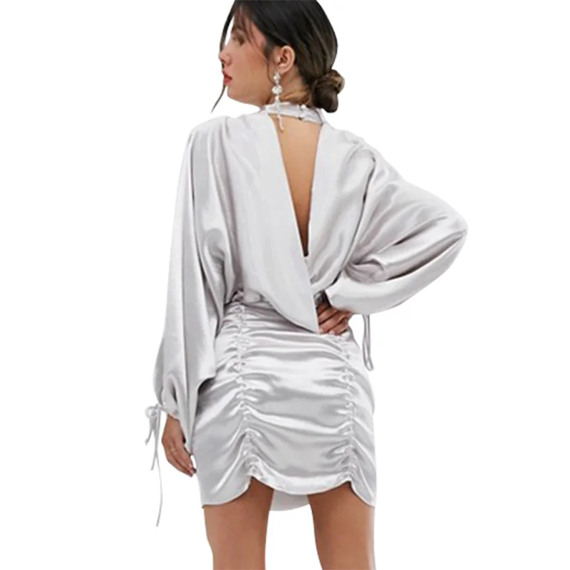 Это мини-платье с высоким воротником, открытой спиной и длинными рукавами «летучая мышь» придает шикарный и сексуальный стиль. Попробуйте для клубов или вечеринок.