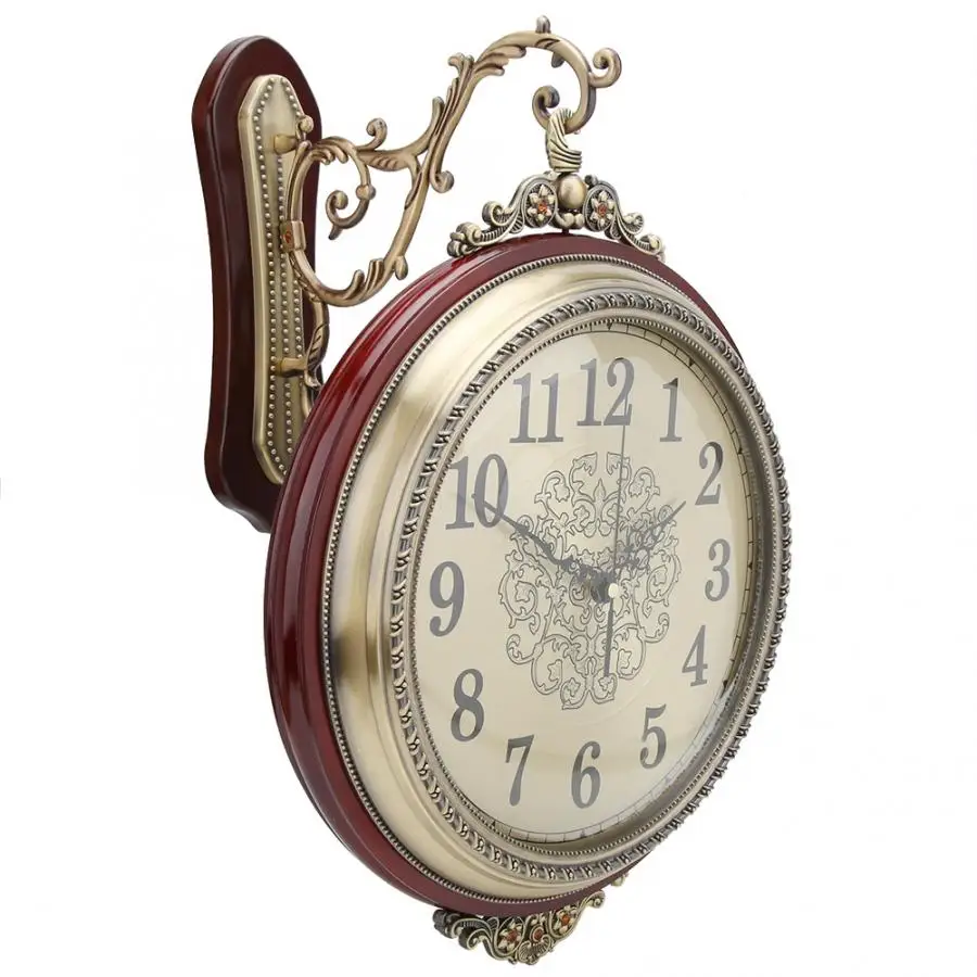 Уникальный циферблат часов в римском и арабском стиле из цельного дерева и сплава с двойными боками. 360 ° вращается под разными углами и большими удобными для чтения числами. Тихий, тихий, не тикающий механизм для плотного сна. Ретро двухсторонние подвесные настенные часы идеально подходят для гостиных, лобби, веранды и коридора и т. Д. Изготовлен из высококачественного сплава, покрытого медью и твердой древесиной, прочный и прочный, легко моется.