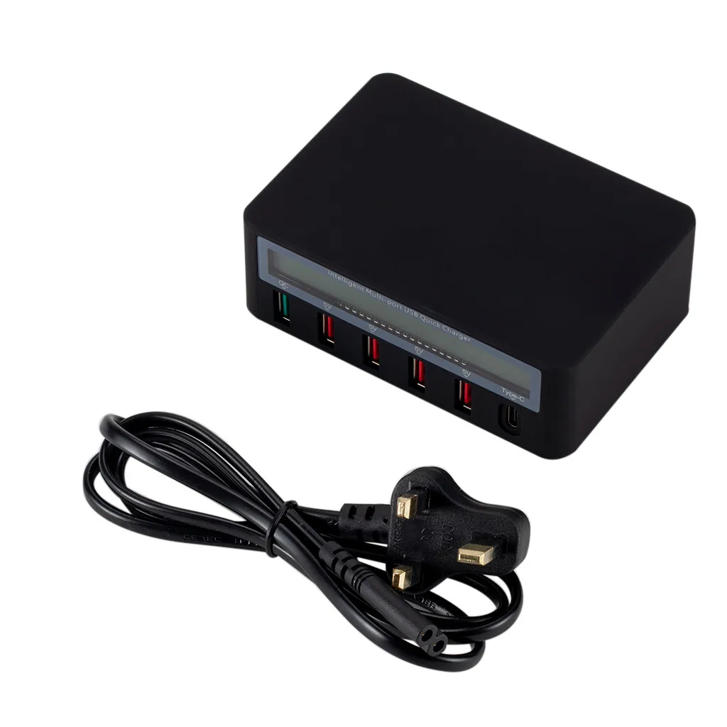 5 портов QC3.0 USB + Type-C концентратор быстрой зарядки с ЖК-дисплеем для iPad для Samsung Особенности: Материал: АБС-пластик + Поликарбонат Цвет: белый 1 QC3.0 + 4 USB2.0 + Type-C Вес упаковки: 399 г Упаковка Размеры: 16x12x6cm Посылка включает в себя: (1 шт.); Концентратор usb 1 х кабель
