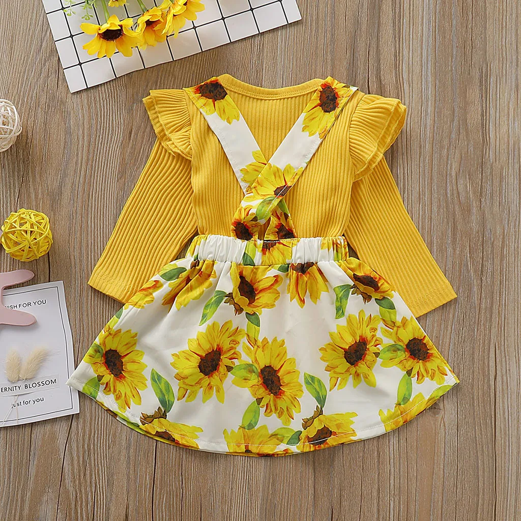 Прочный Комбинезон для маленьких девочек, боди + комбинезон с принтом подсолнуха