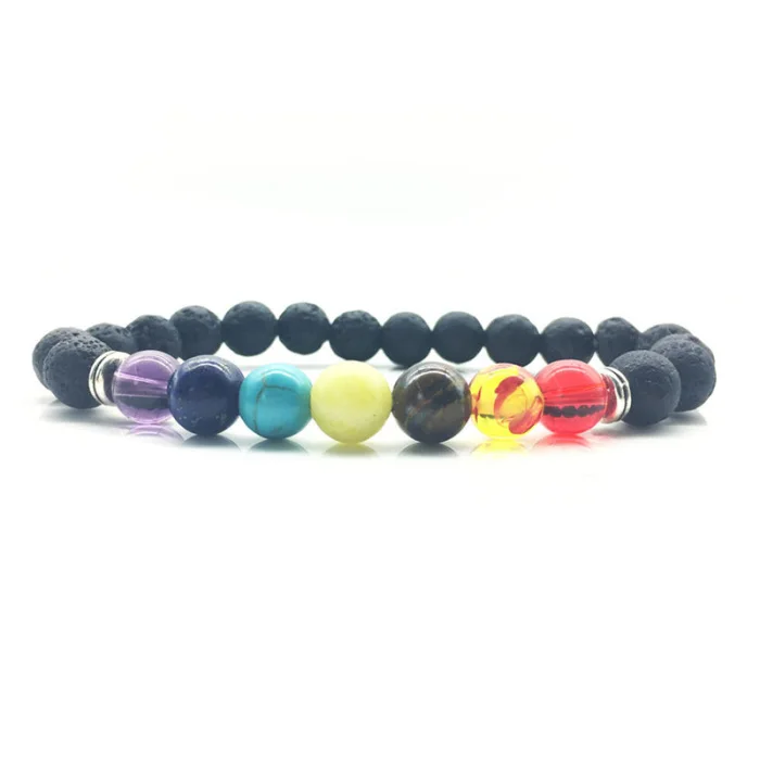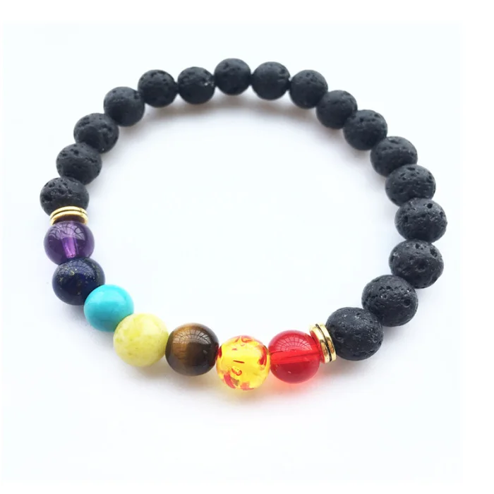 Новая мода для мужчин женщин браслет натуральный камень лавы красочные бисером 7 Шарм в виде чакры ювелирные браслеты аксессуары MV66