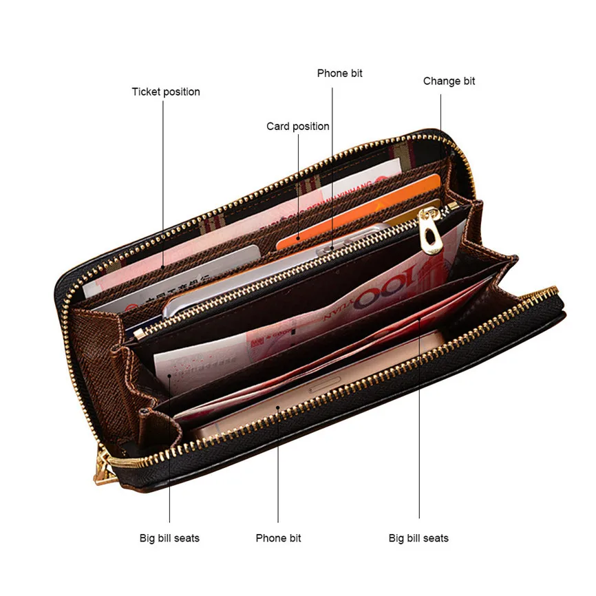 Мужской Длинный кошелек на молнии, Большая вместительная сумка для телефона с несколькими отделениями, простой и роскошный держатель для карт
