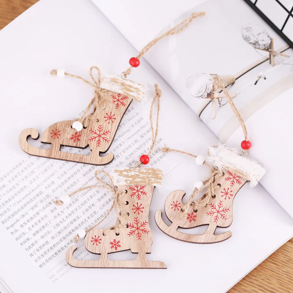 Рождественские украшения Окрашенные деревянные печатные коньки пеньковая веревка Маленькая подвеска