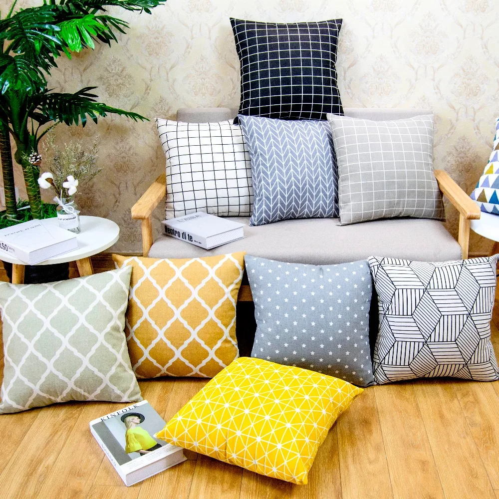40x4 0/45x4 5/50x50 см современная простая клетчатая наволочка из хлопка и льна, наволочки на диванную подушку, декоративная наволочка на подушку