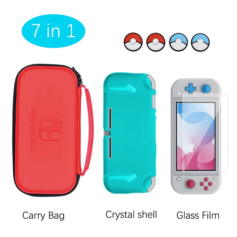 7 в 1 Набор аксессуаров для Nintendo Switch Lite с сумкой с украшением в виде кристаллов в виде ракушки закаленная пленка аналоговые колпачки для контроллер NS