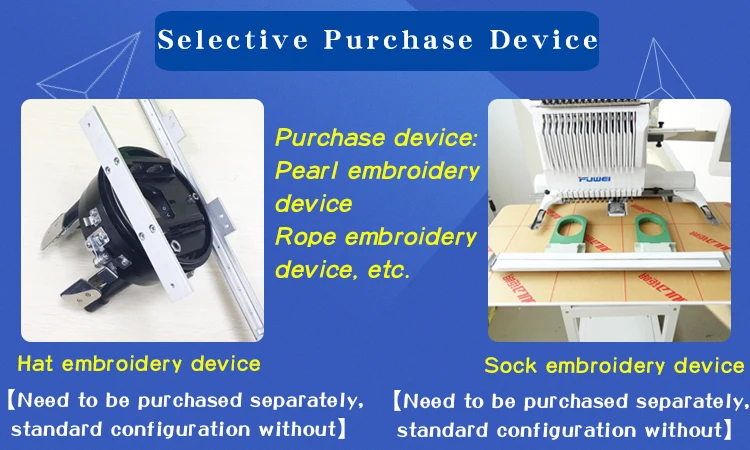 Примечание: устройство для вышивки шляп и устройство для вышивки чулок необходимо приобретать отдельно, стандартное оборудование не включает