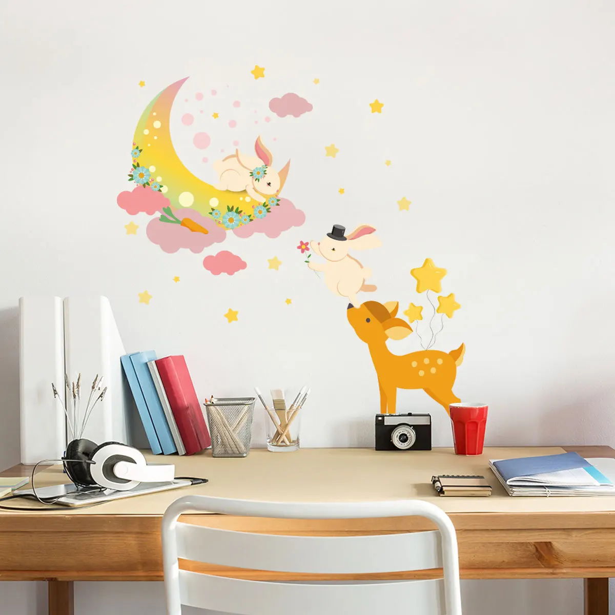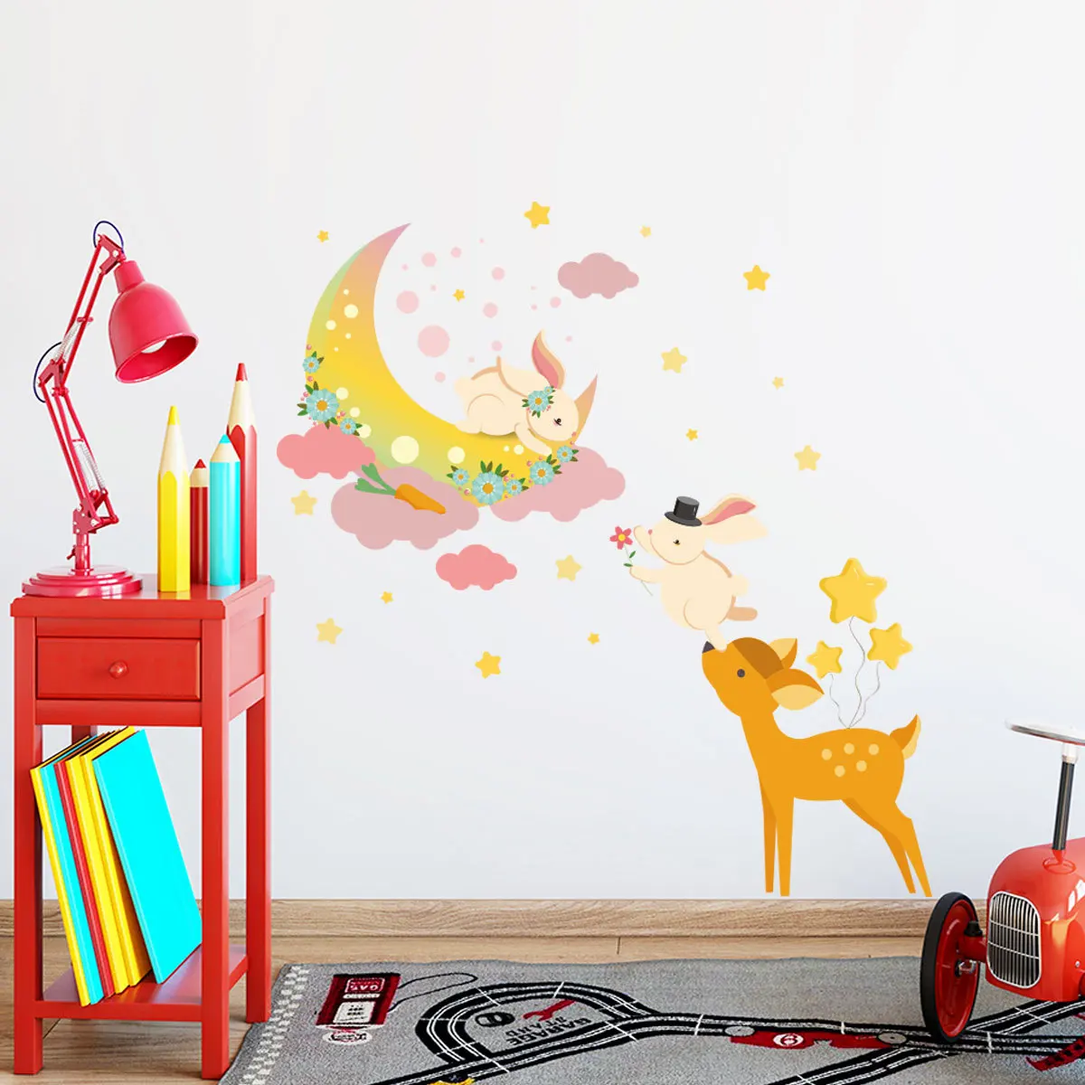 Декоративные настенные Стикеры для спальни с изображением оленя Луны кролика, обои для детской комнаты, настенные наклейки для детского сада, Декор для дома