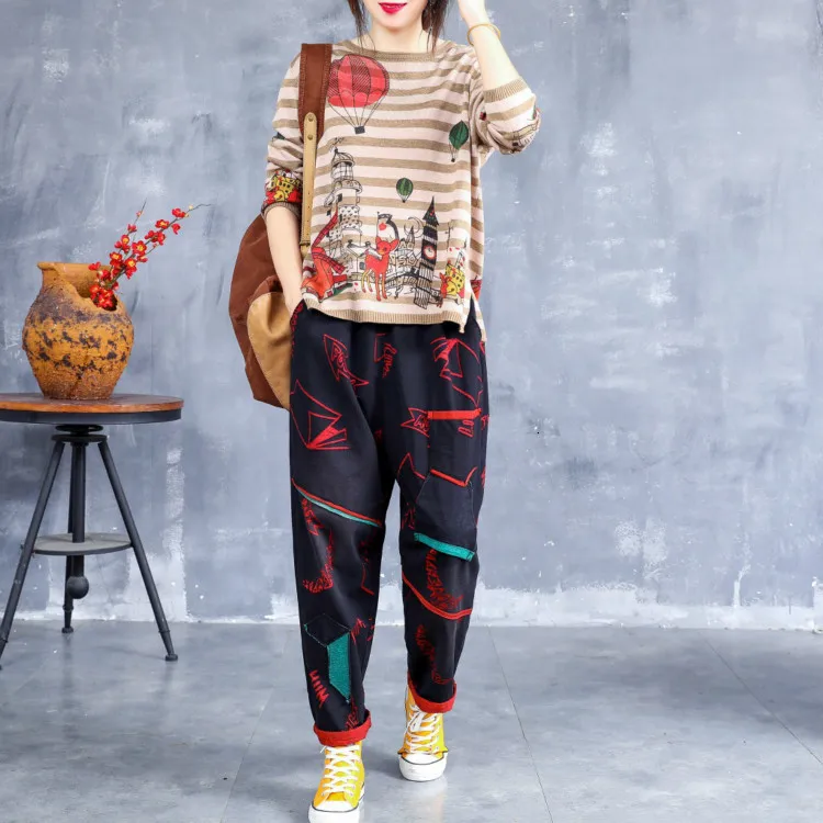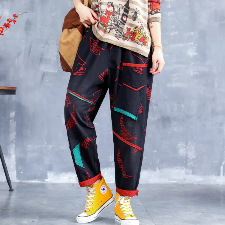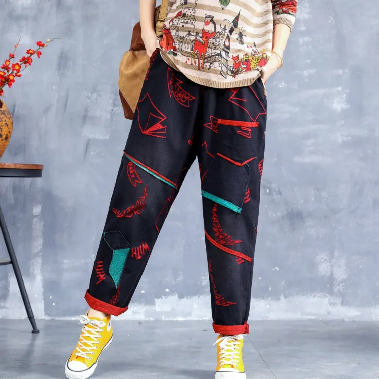 Корейские модные длинные брюки в стиле пэчворк