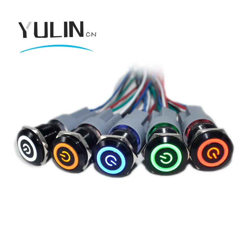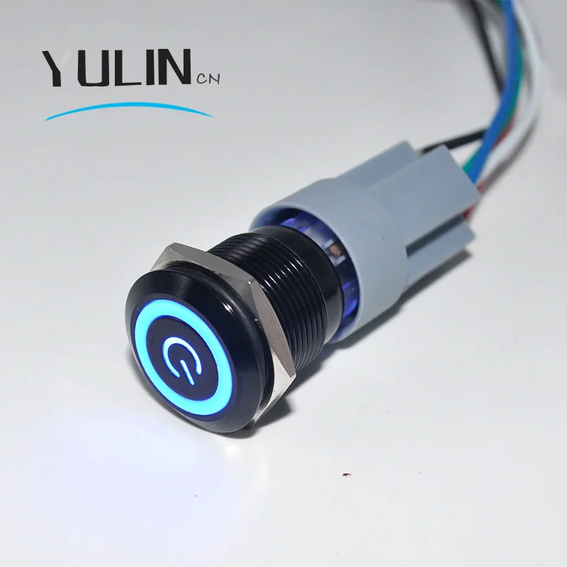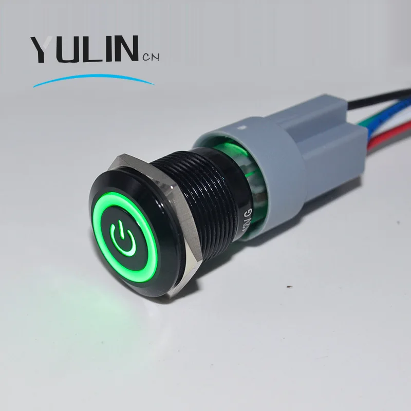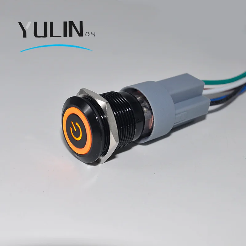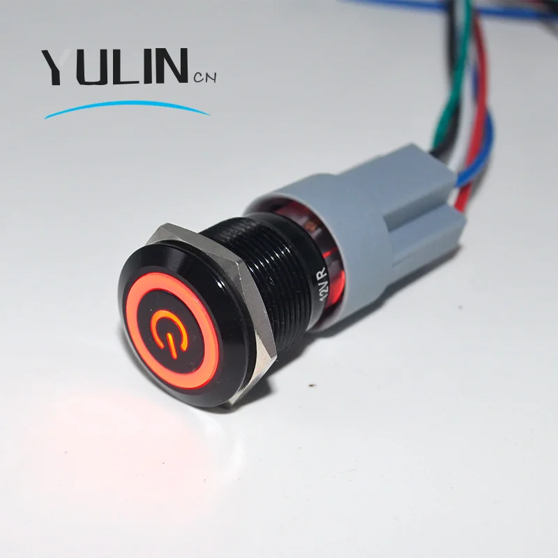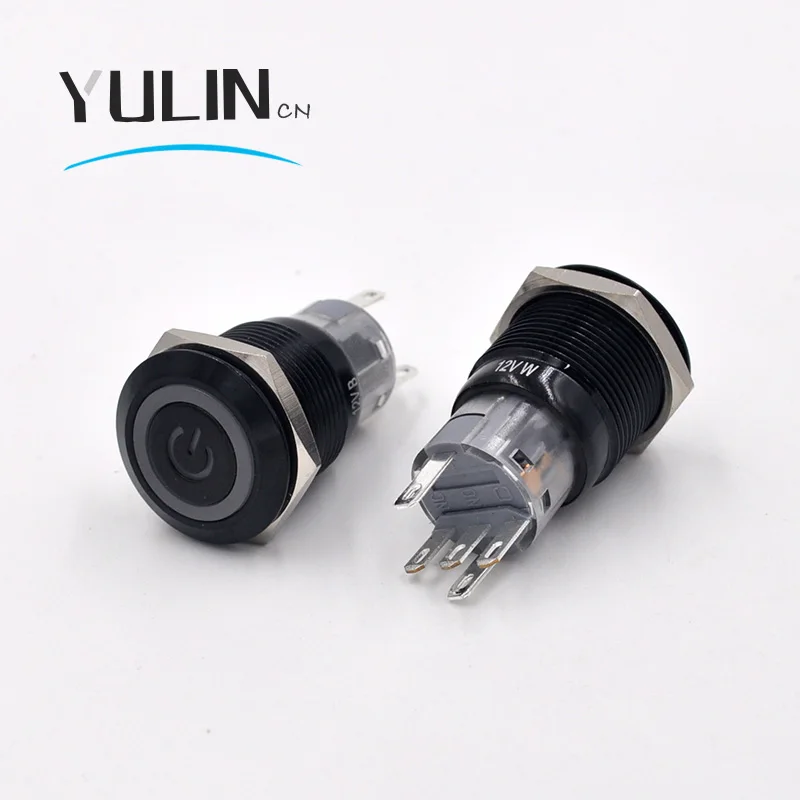 19mmwaterproof металлический кнопочный переключатель Алюминий оксид черный Мощность переключатель Выключатель без фиксации с Мощность символ