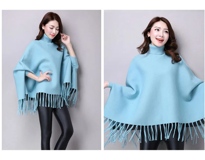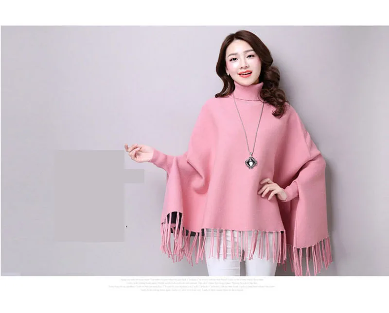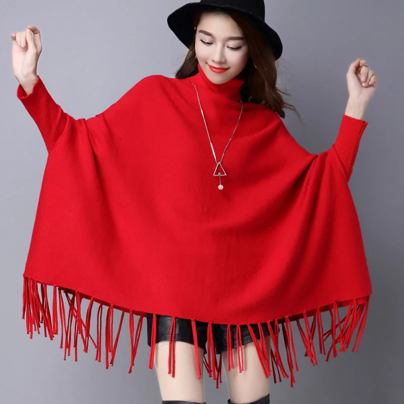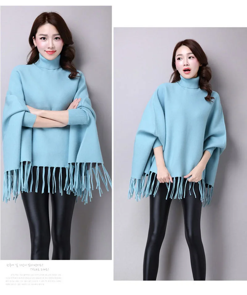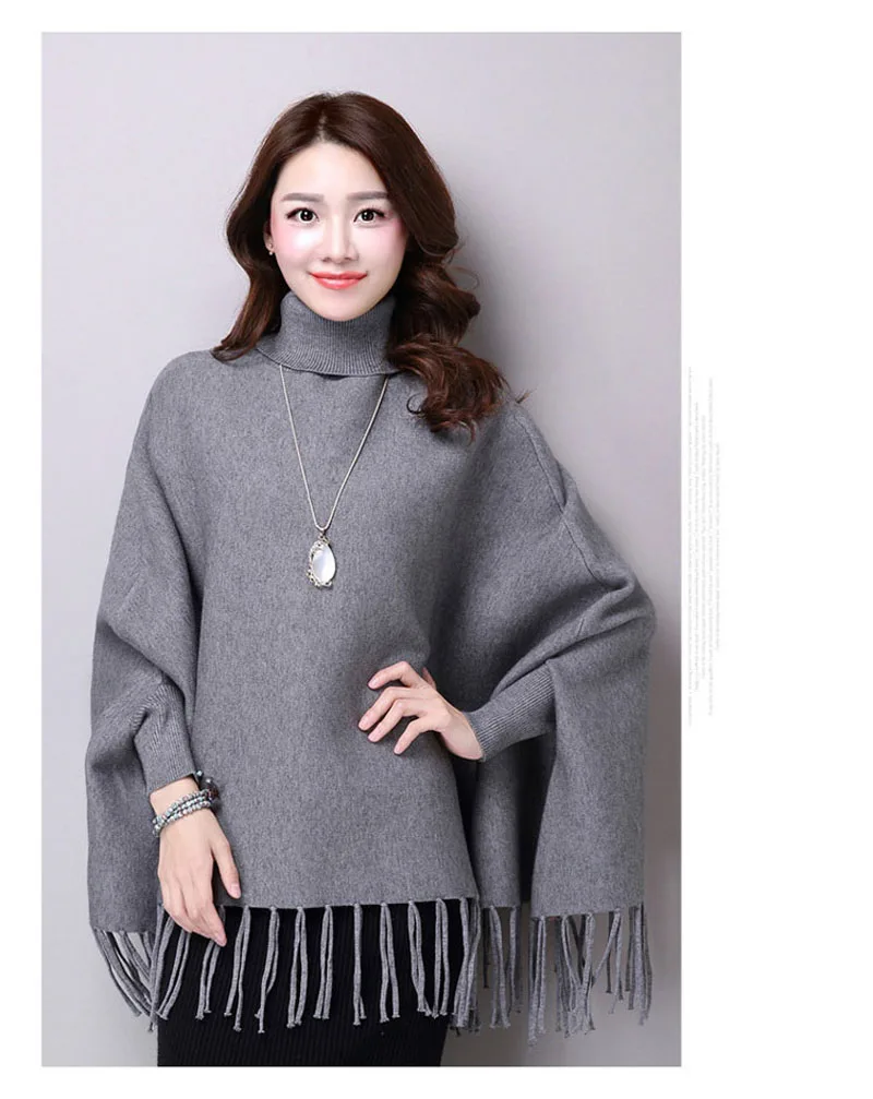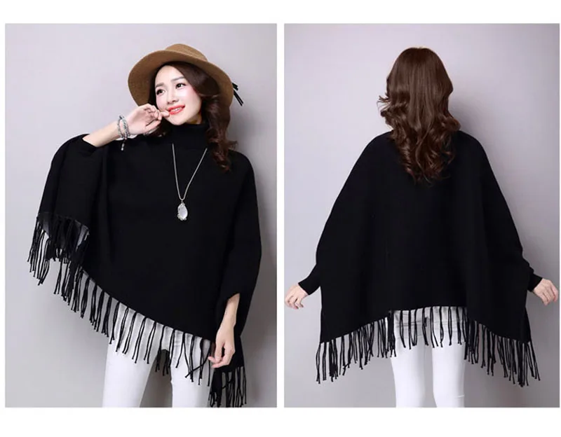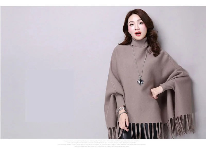 Новинка осень зима пуловеры свитера свободные кисточки мягкая шаль пончо Женская водолазка рукав "летучая мышь" длинный рукав вязаный свитер накидка