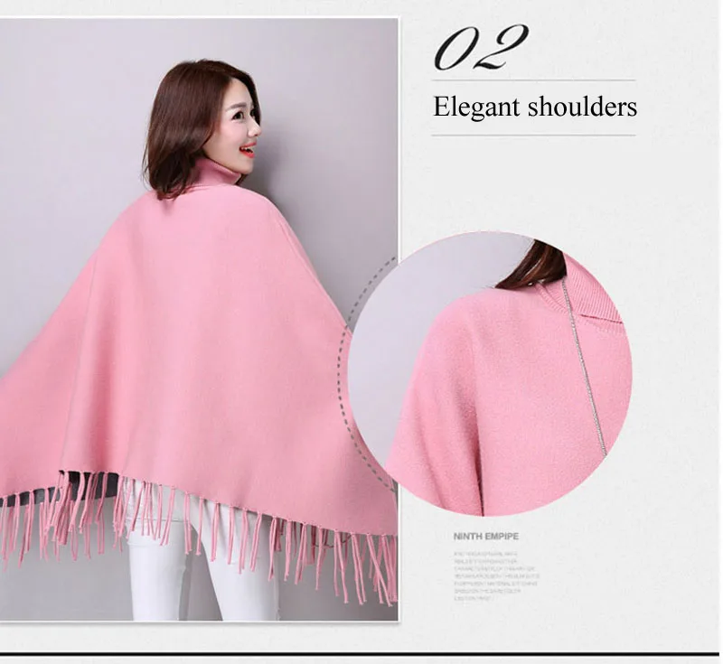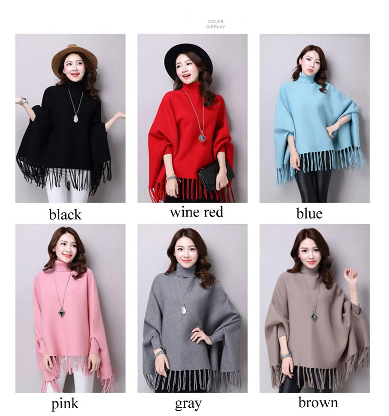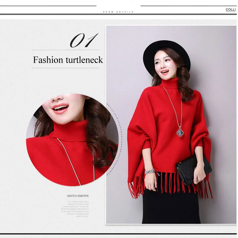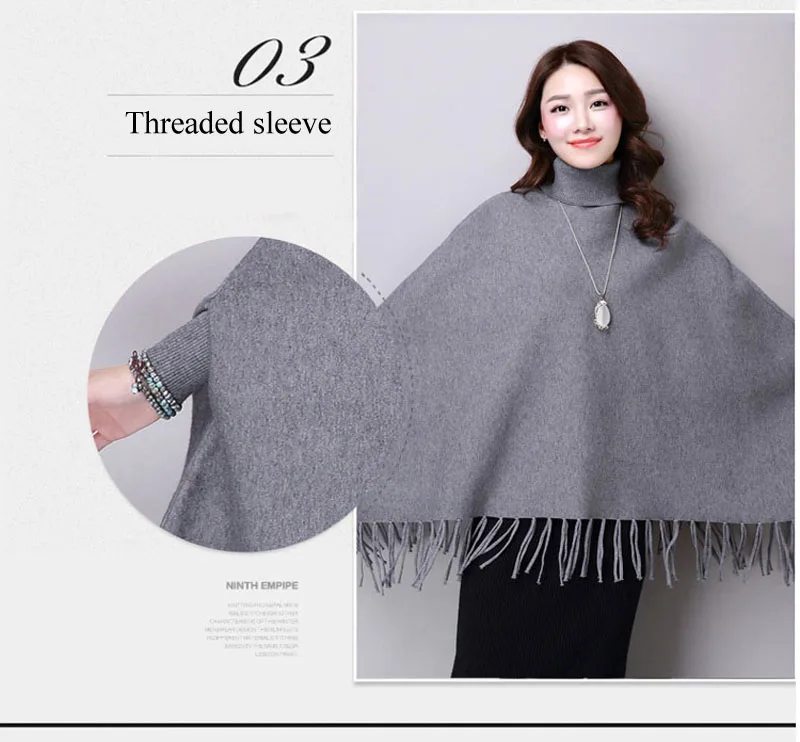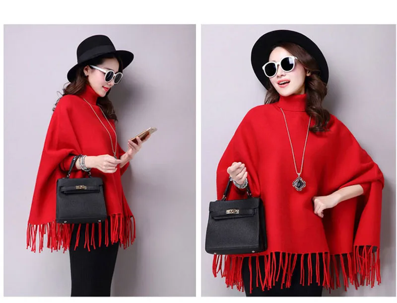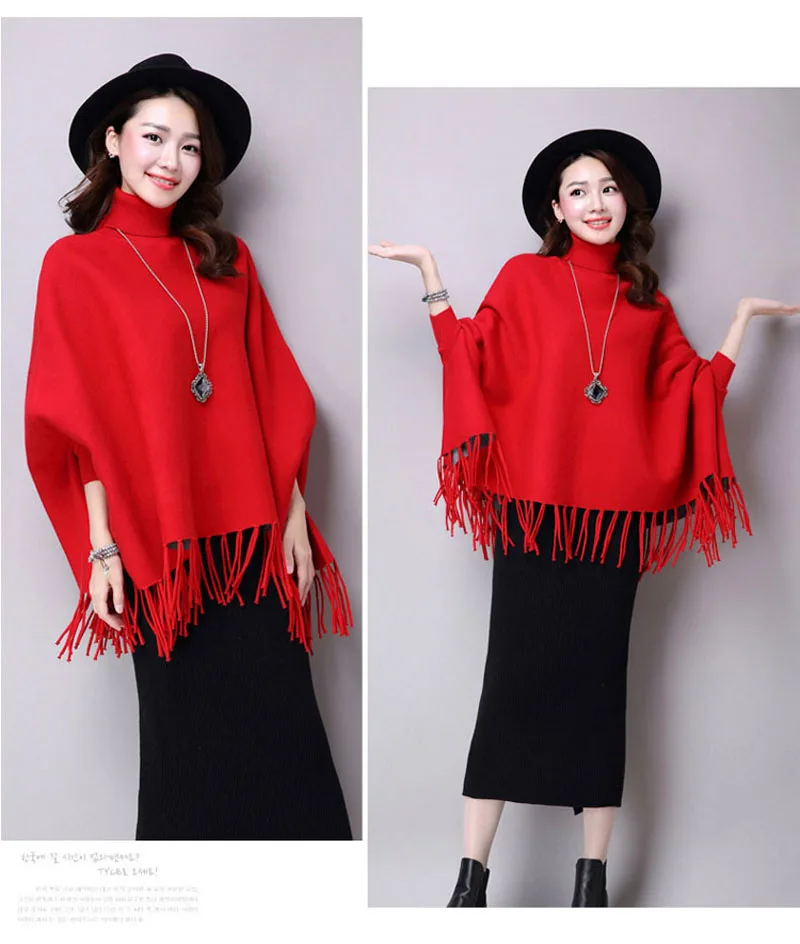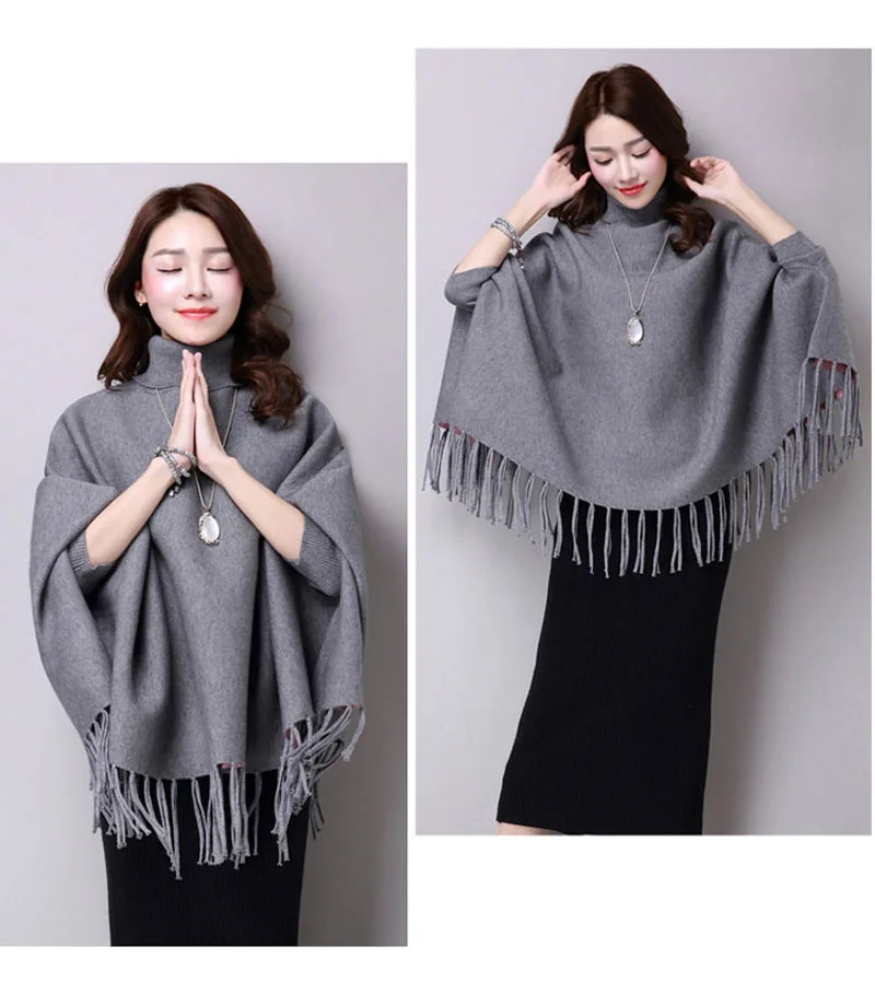 Новинка осень зима пуловеры свитера свободные кисточки мягкая шаль пончо Женская водолазка рукав "летучая мышь" длинный рукав вязаный свитер накидка