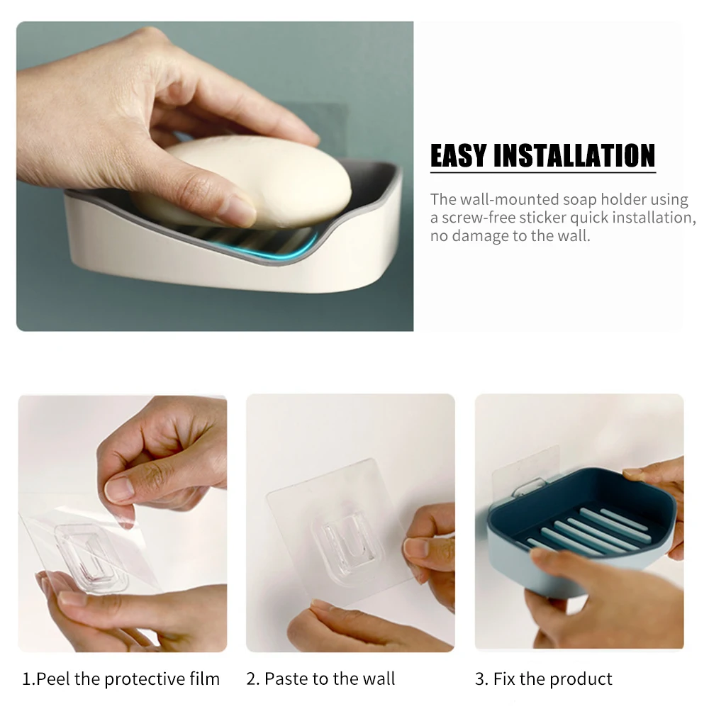[Легко Установка]Настенный держатель для мыла с помощью наклейки без винтов быстрая установка, без повреждения стены.