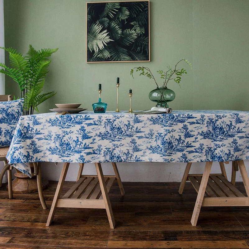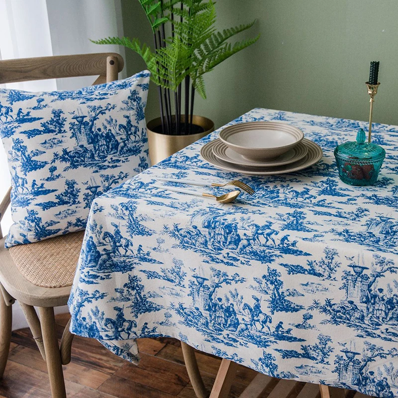 Скатерть американская пасторальная Ретро синяя печать чернила хлопок и лен прямоугольная скатерть для домашнего пикника Кофейня