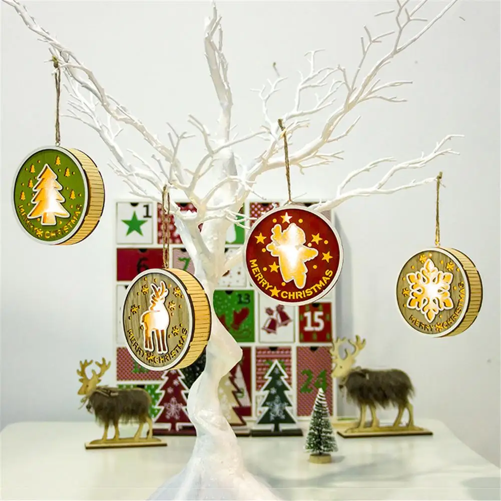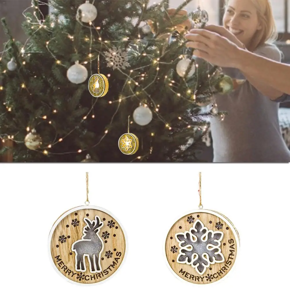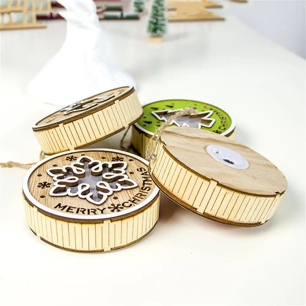 Рождественская лампа деревянная круглая подвесная Елочная игрушка декоративная висячая лампа