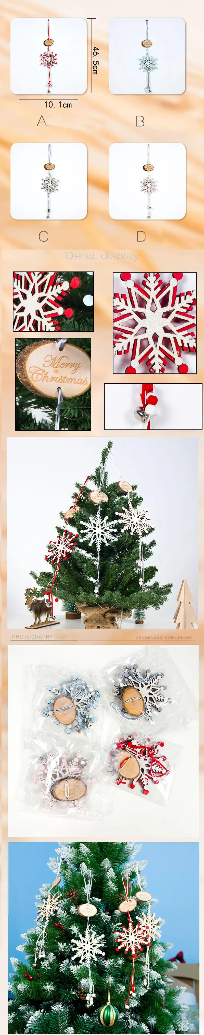 2020 рождественское Новогоднее Рождественское украшение для дома деревянная DIY Рождественская Снежинка подвеска с бубенчиками Рождественская елка украшения SA230