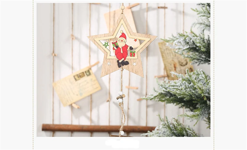Новый год 2020 рождественские украшения DIY деревянная пятиконечная звезда Подвеска Маленькая елка шестиконечная звезда окно Маленькая подвеска ZB015