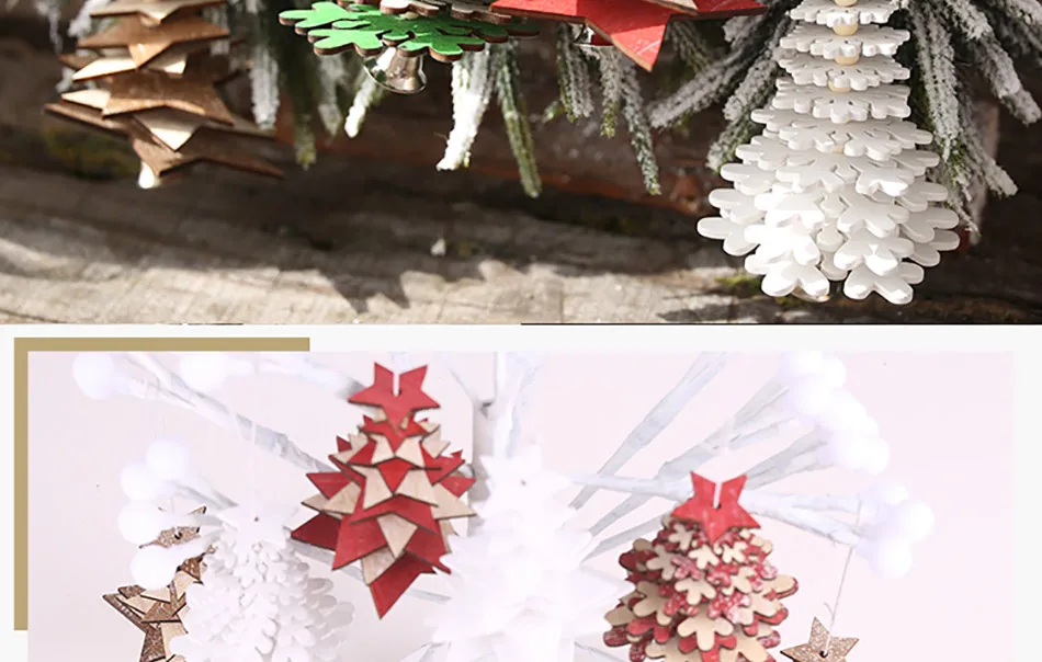 Деревянные поделки 3D Снежинка звезда с колокольчиком Подвески Рождественская елка висячие украшения праздничные новогодние вечерние украшения ZB134