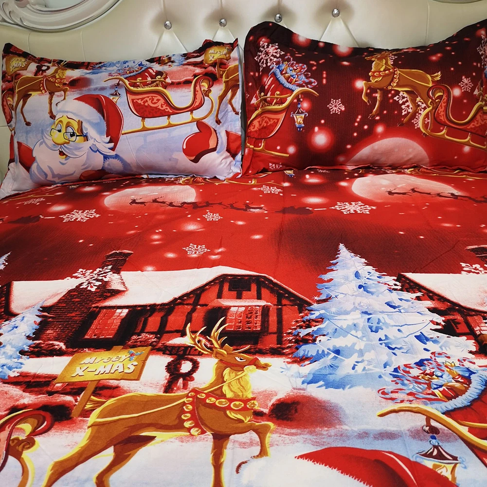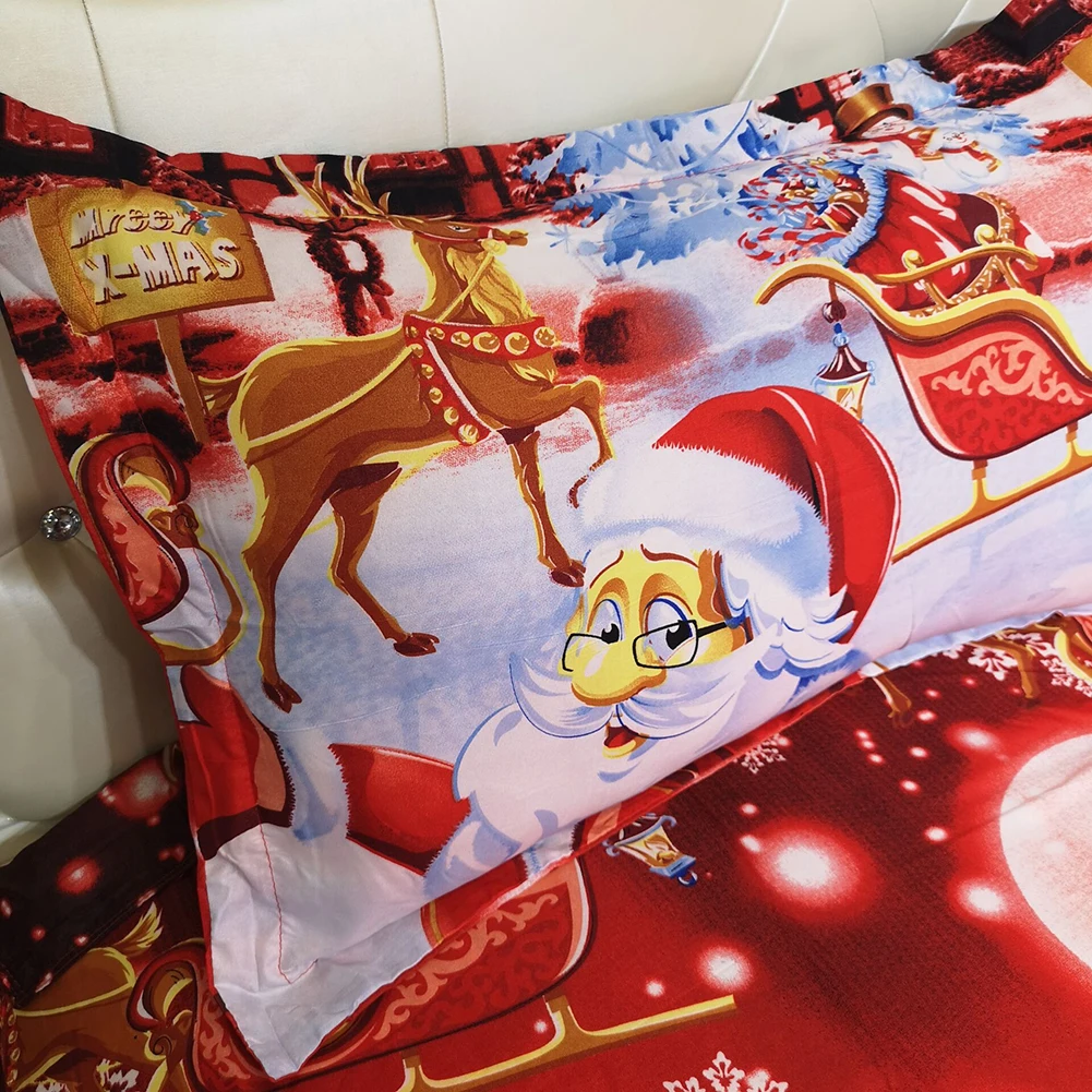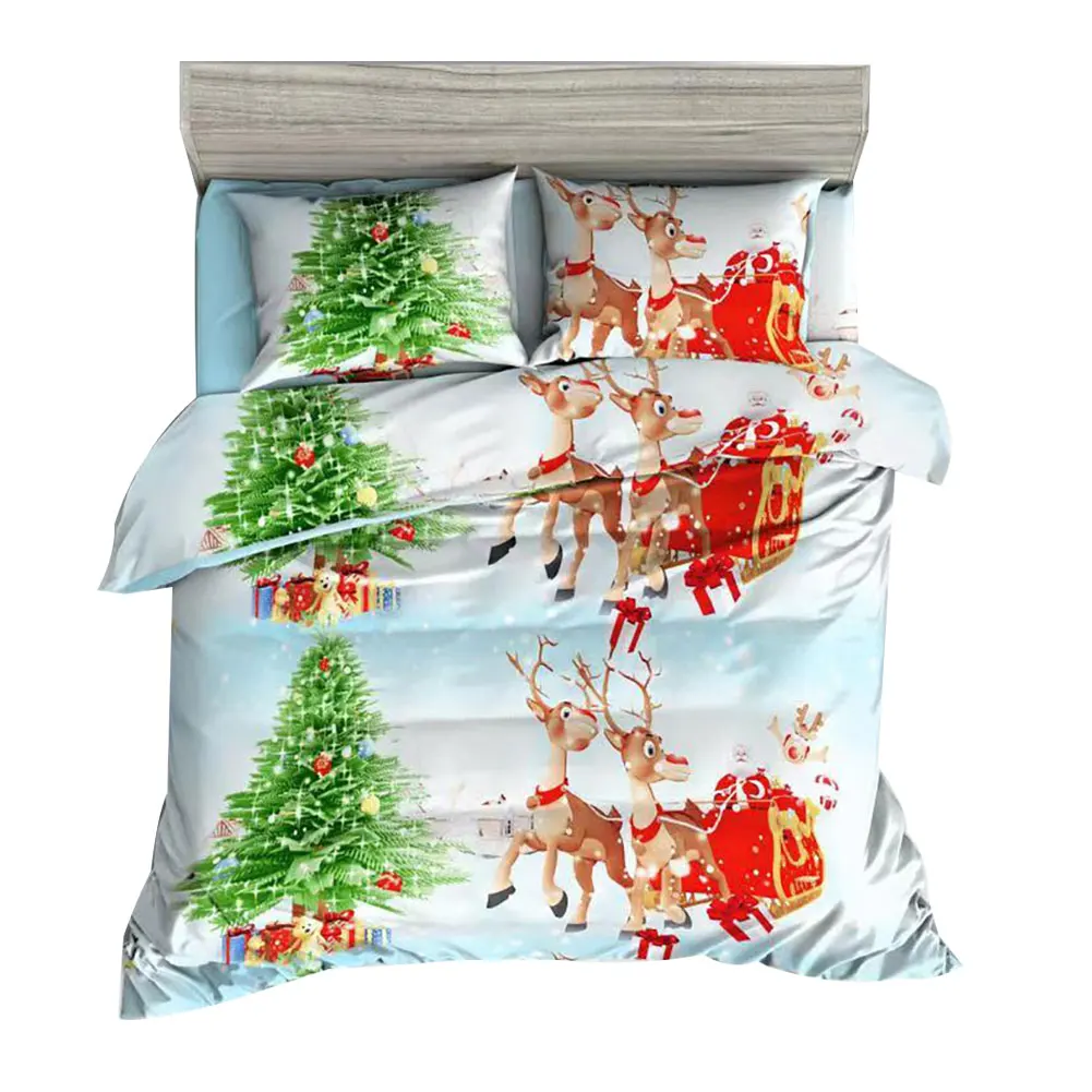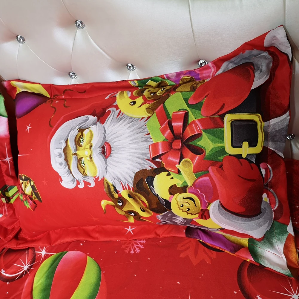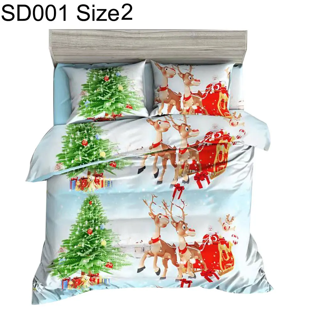 3 шт. Рождественское украшение комплект постельного белья Рождество Санта Клаус лося простыня пододеяльник Мягкий Чехол на подушку постельные принадлежности из шелка комплект постельного белья